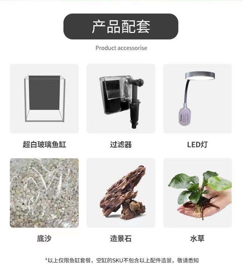 • 22*14*18(확장) 초백색 유리 수조 + 걱정 없는 조경 선물 패키지