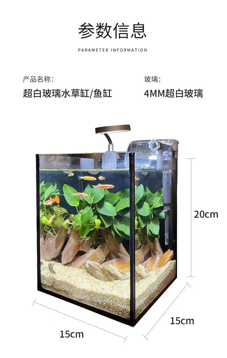 • 15*15*20(핫 스타일) 초백색 유리 수조 + 걱정 없는 조경 선물 패키지
