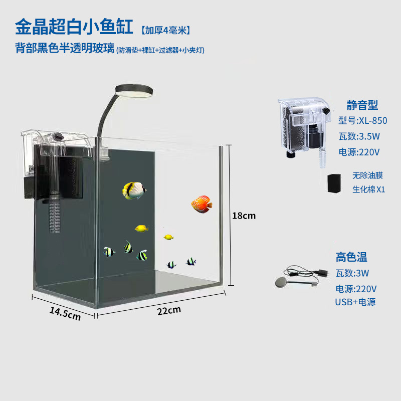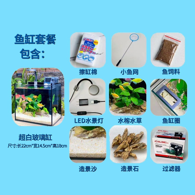 • 22*14*18 (확장) 초백색 유리 수조 + 필터 + LED 수경 조명