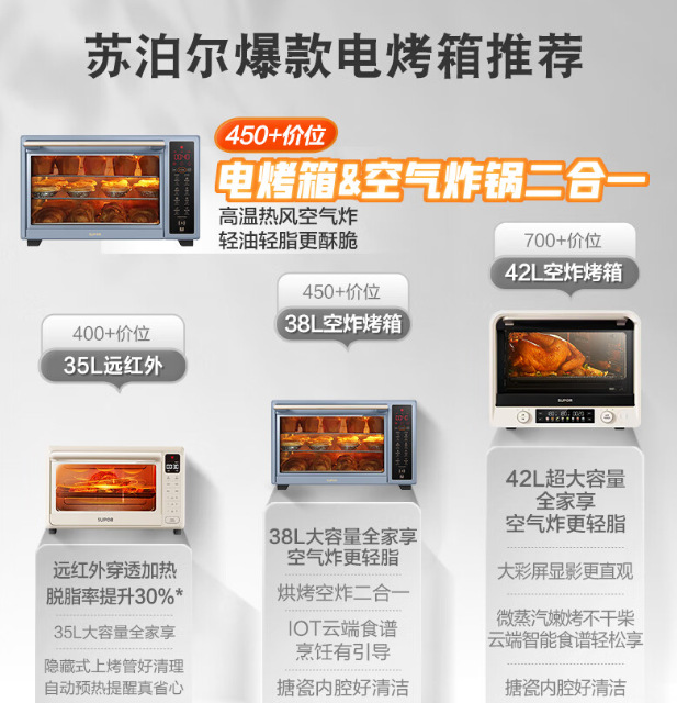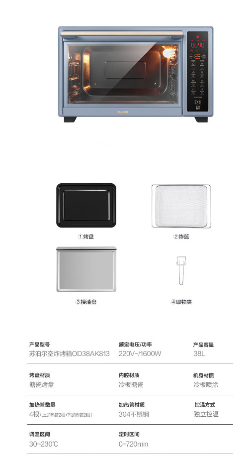 Supor 전기 오븐 에어 프라이 가정용 다기능 케이크 빵 가정용 오븐 베이킹 머신 38L 대용량스토어 가기