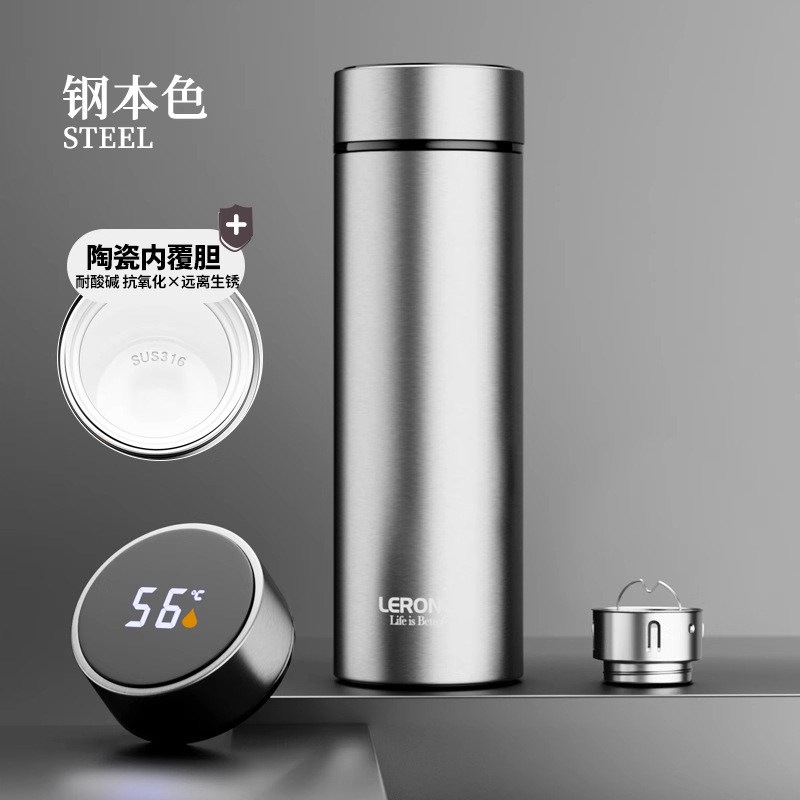• [세라믹 라이너 + 지능형 온도 디스플레이] 스틸 컬러 500ML - 선물 상자 스타일