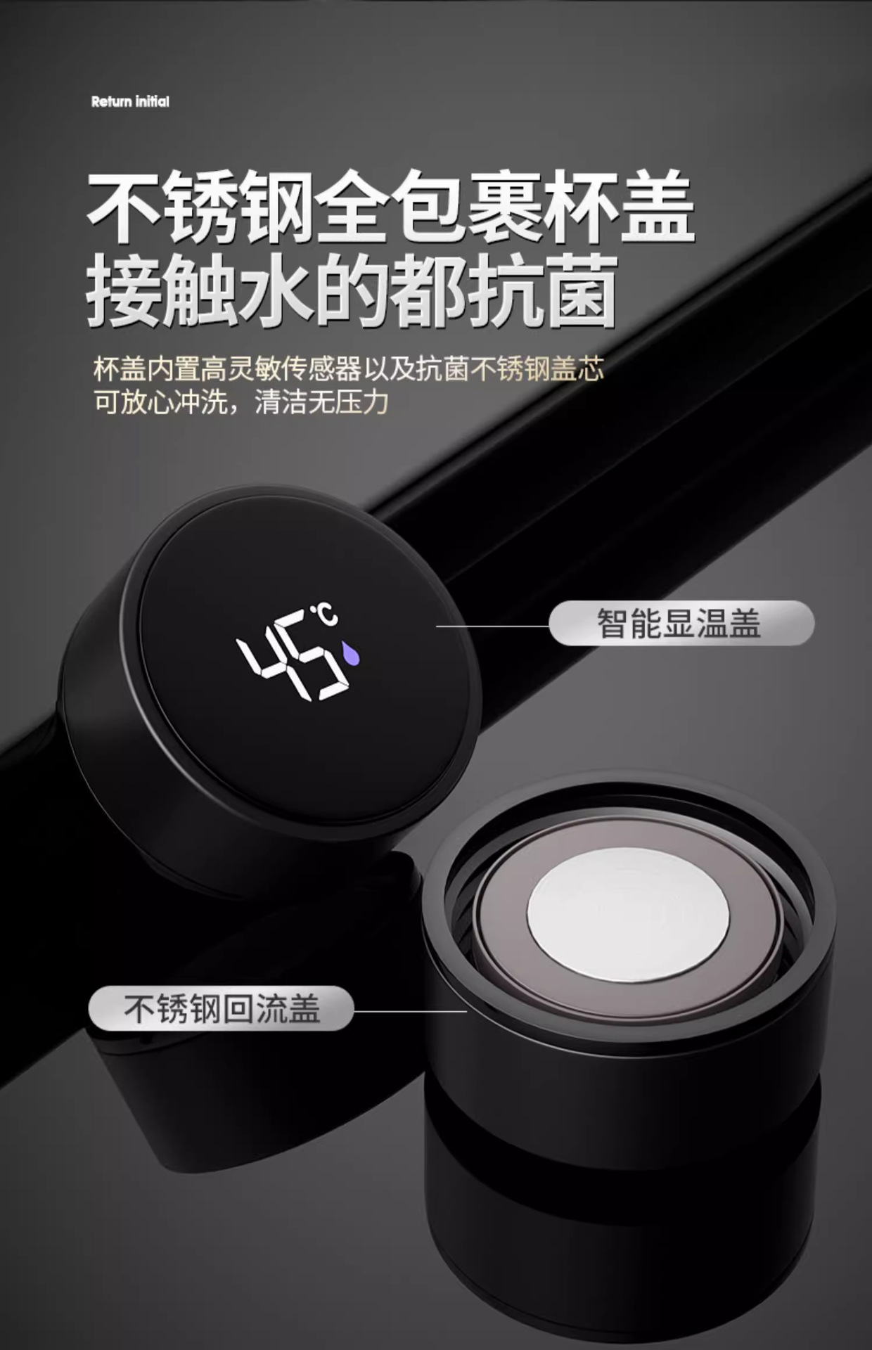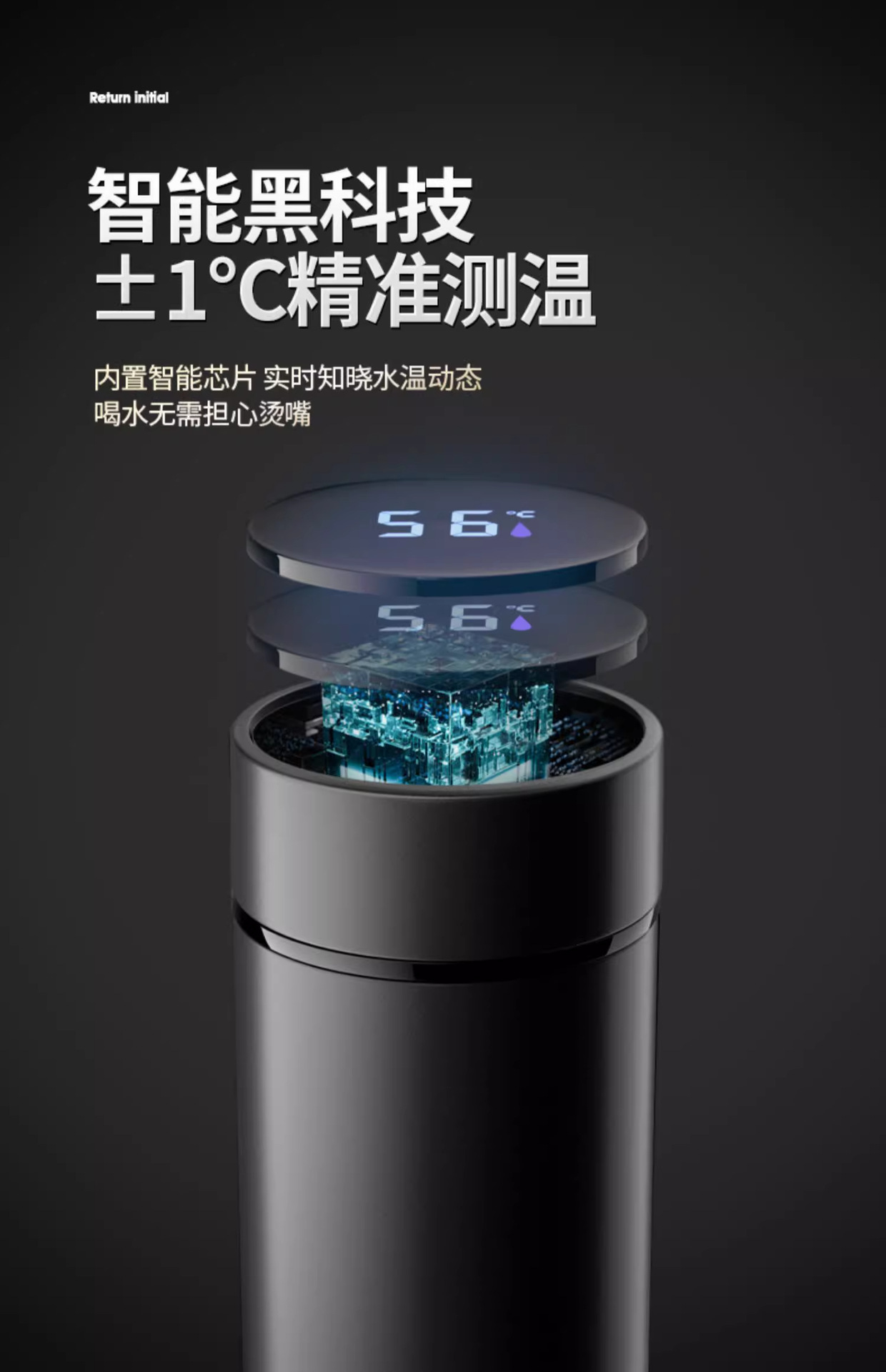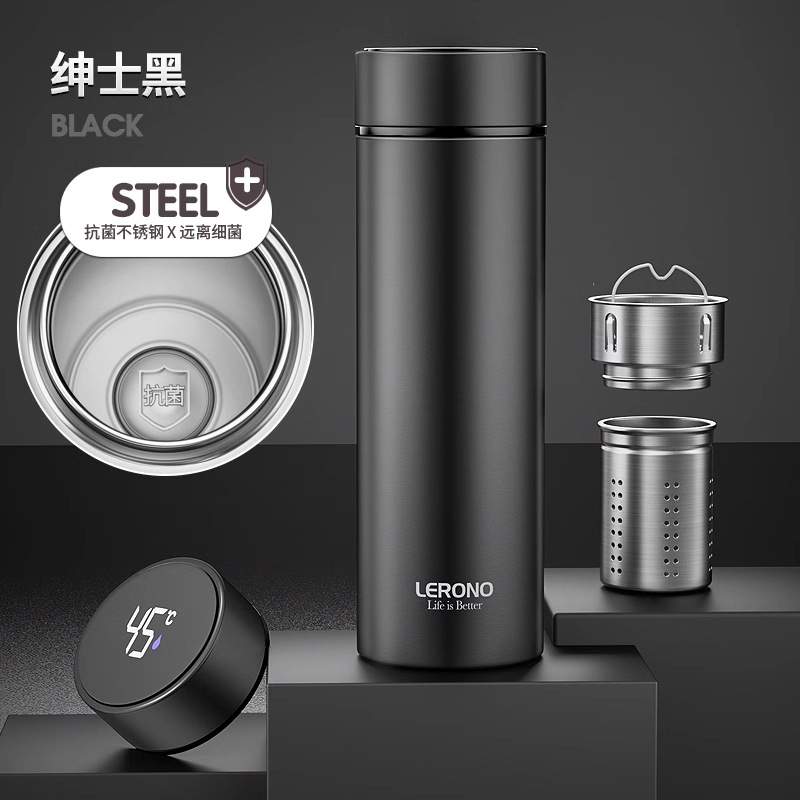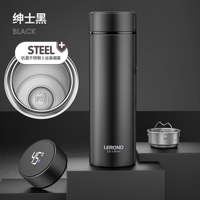 • [항균라이너 + 지능형 온도 디스플레이] 블랙 500ML - 선물박스 스타일
