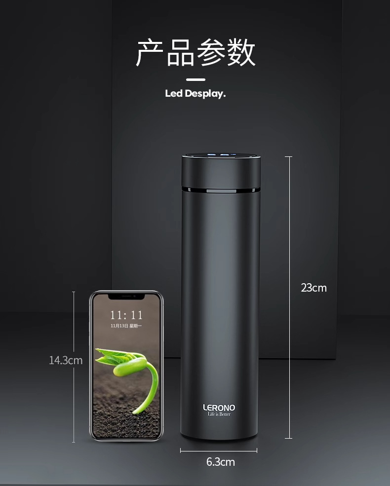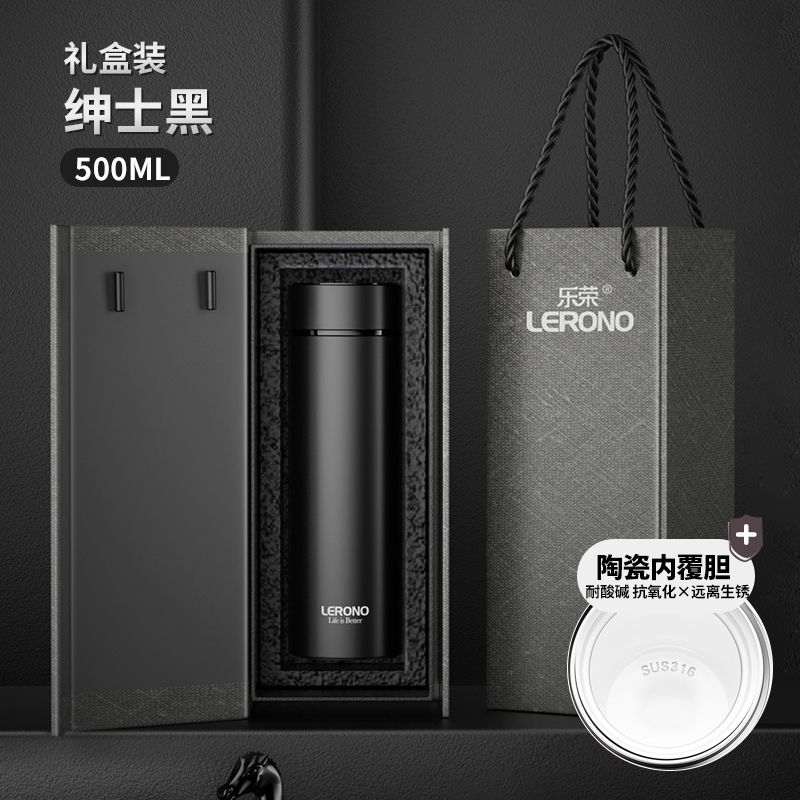 • [세라믹 라이너 + 지능형 온도 디스플레이] 블랙 500ML - 선물 상자 스타일