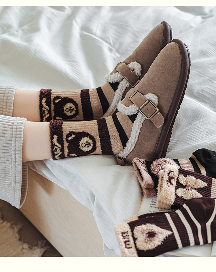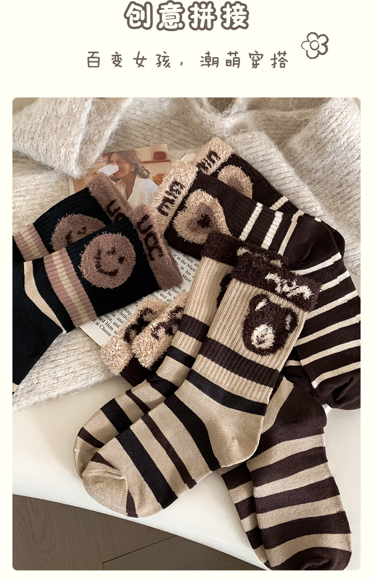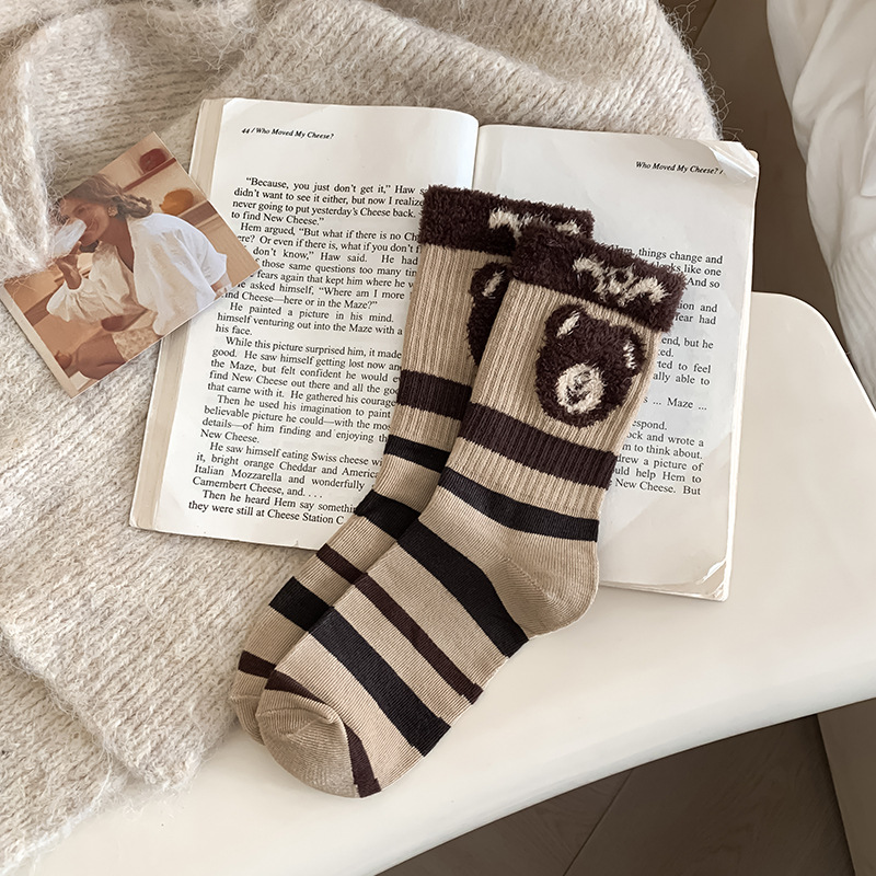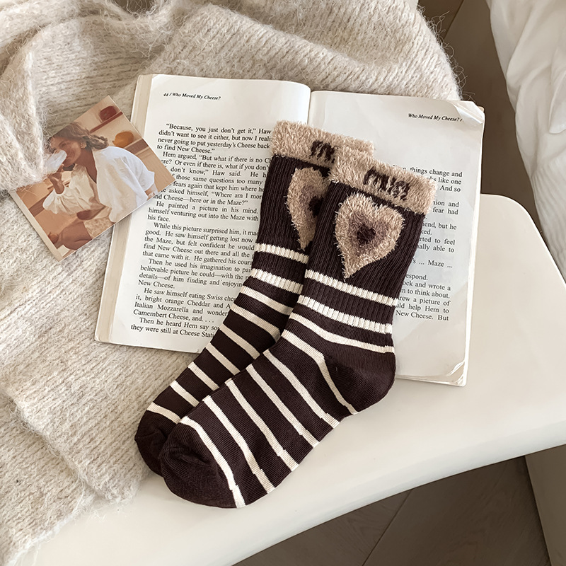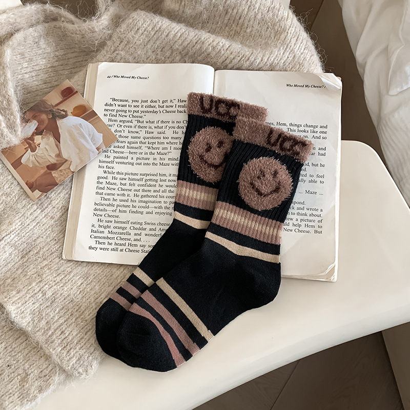 양말 여성의 긴 배럴 가을과 겨울 두꺼운 면화 여성 양말 인터넷 인기 높은 색 가치 편지 스타킹