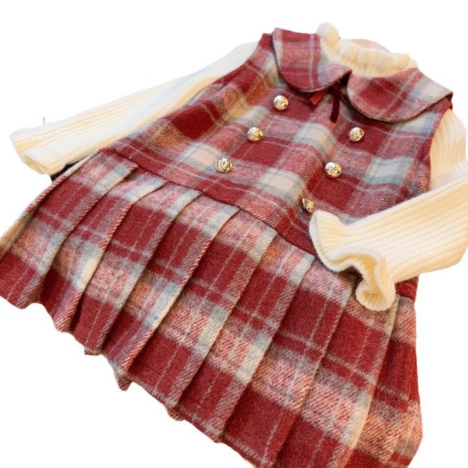 여자 정장 드레스 가을, 겨울 2025 새로운 스타일 아기 소녀 벨벳 공주 드레스 어린이 스타일 스웨터 스커트