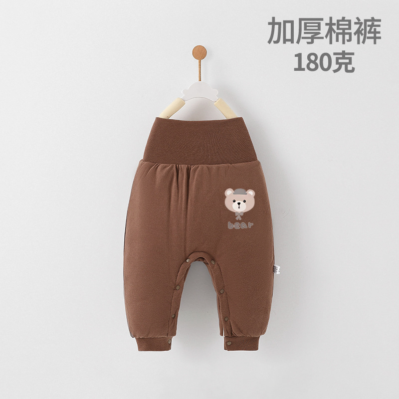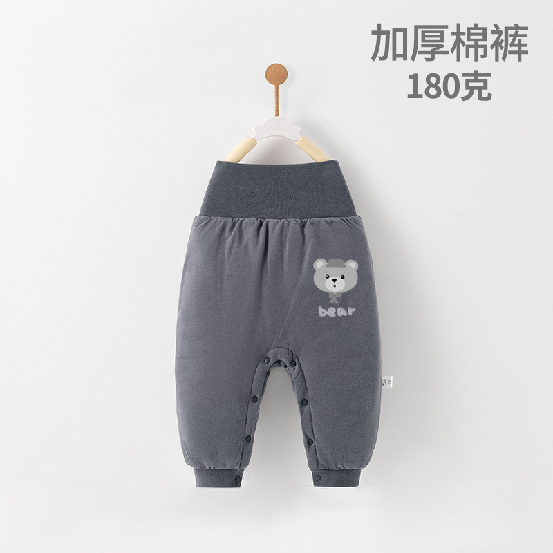 아기의 버튼형 오픈 크로 치 긴 바지 두꺼운 코튼 바지 아기의 높은 허리 배꼽 보호 바지 면 따뜻한 바지 가을과 겨울스토어 가기