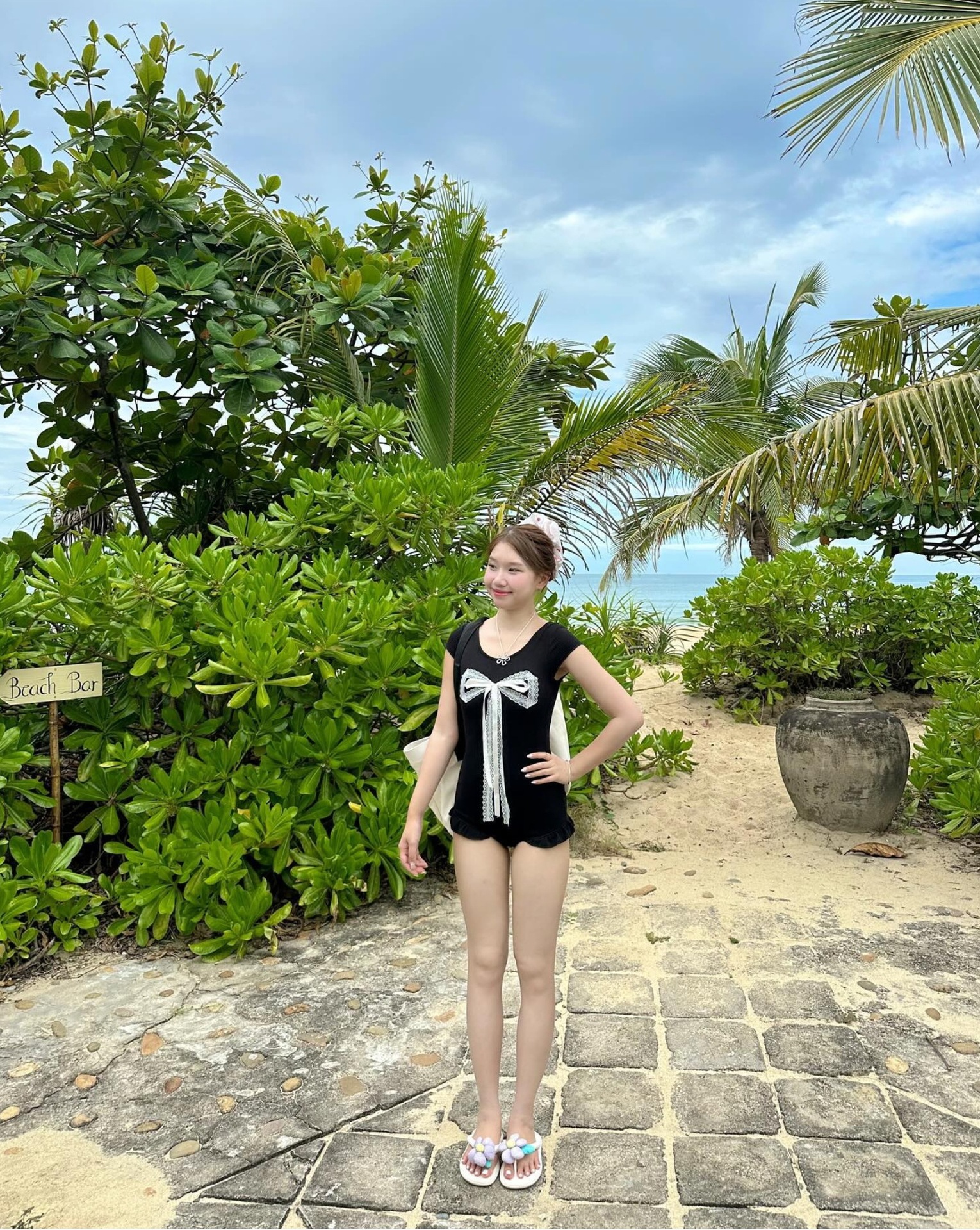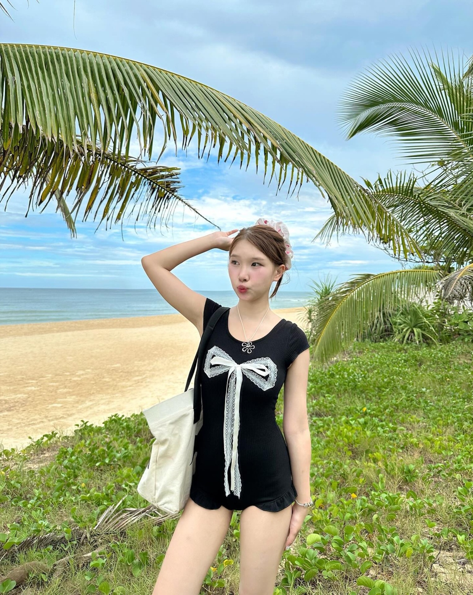 한국판 2025년 신상 여성용 원피스 심플 고급 슬림핏 보수적인 사각형 리본 온천 휴가 수영복스토어 가기