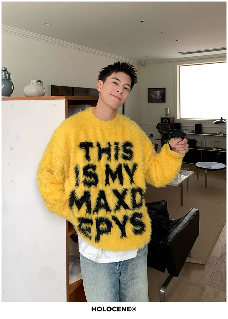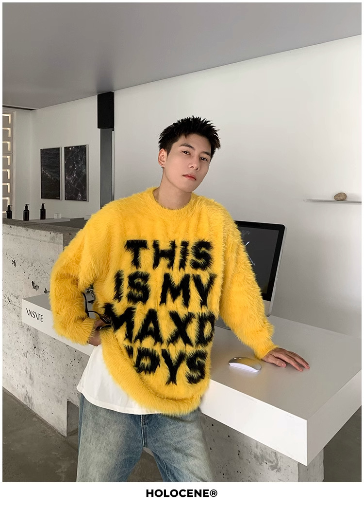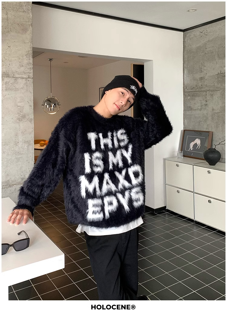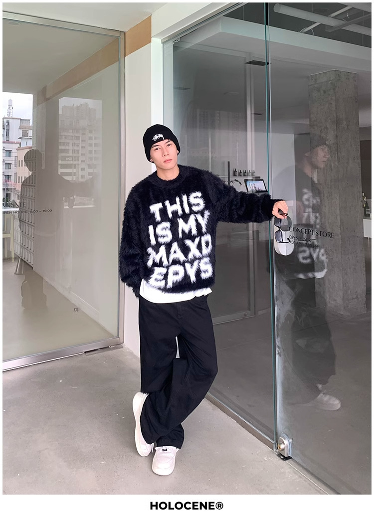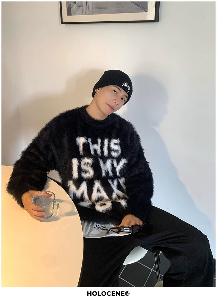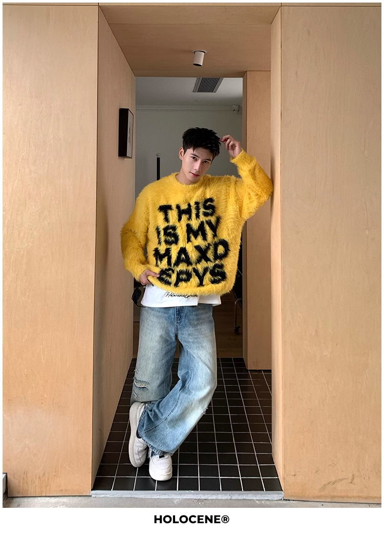 전국 패션 레트로 레터 디자인 센스 게으른 스타일 스웨터 남성 봄과 가을 2024 새로운 미국 스타일 패션 브랜드 스웨터 탑