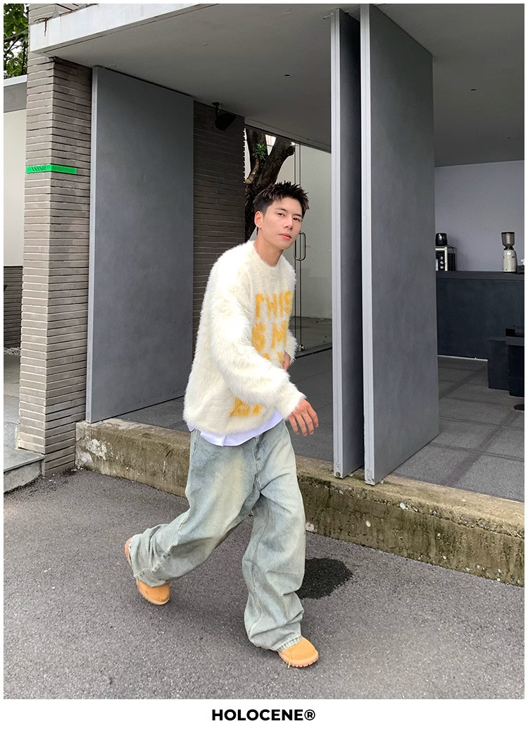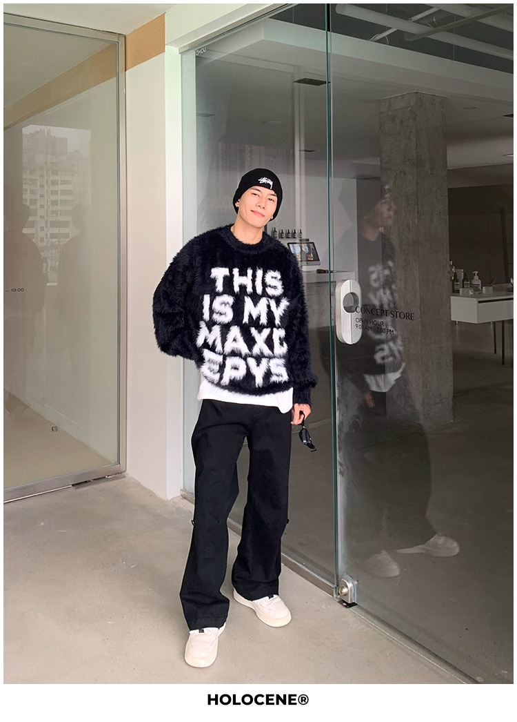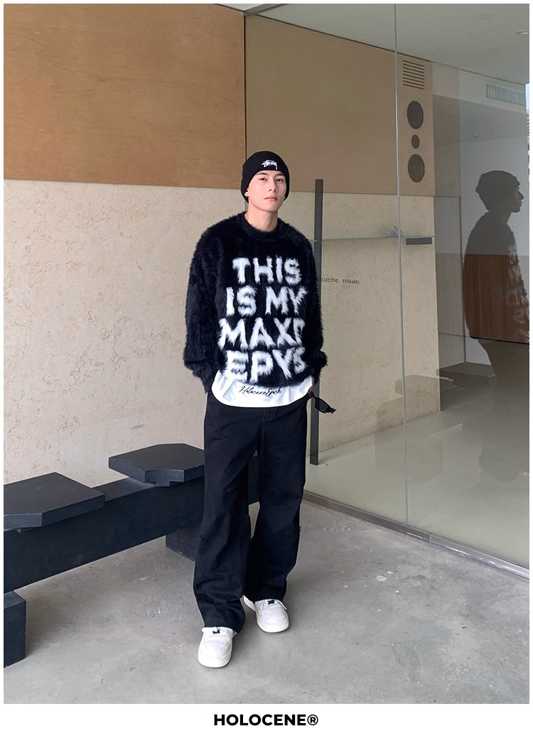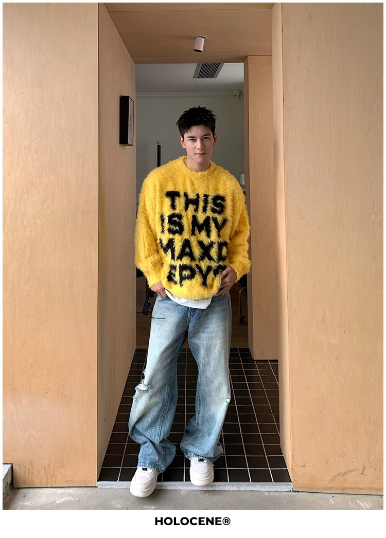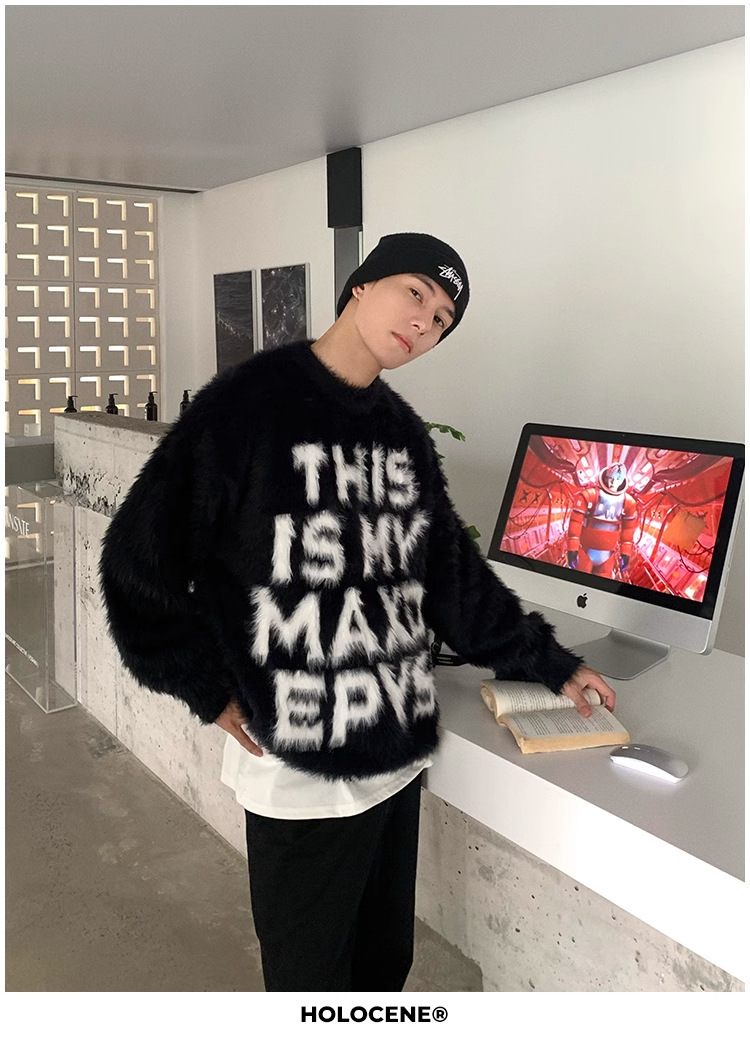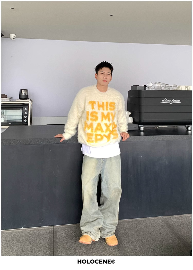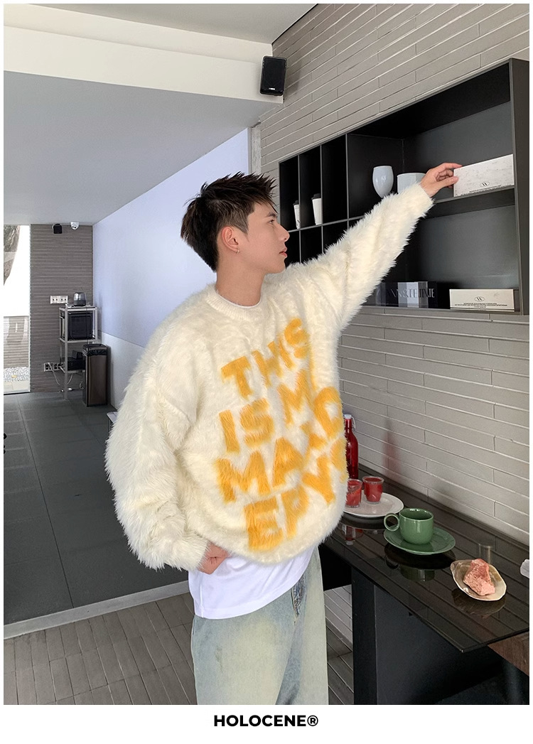 전국 패션 레트로 레터 디자인 센스 게으른 스타일 스웨터 남성 봄과 가을 2024 새로운 미국 스타일 패션 브랜드 스웨터 탑