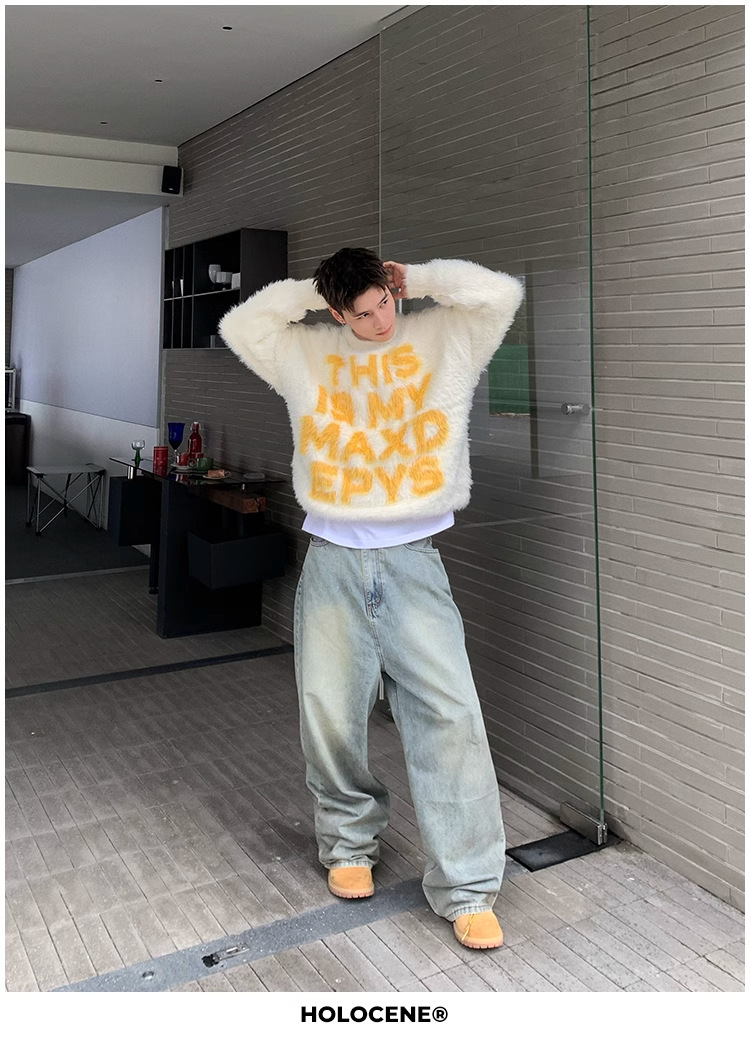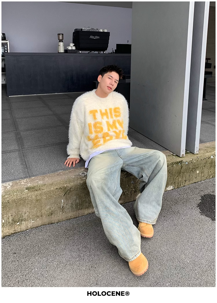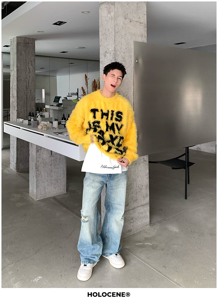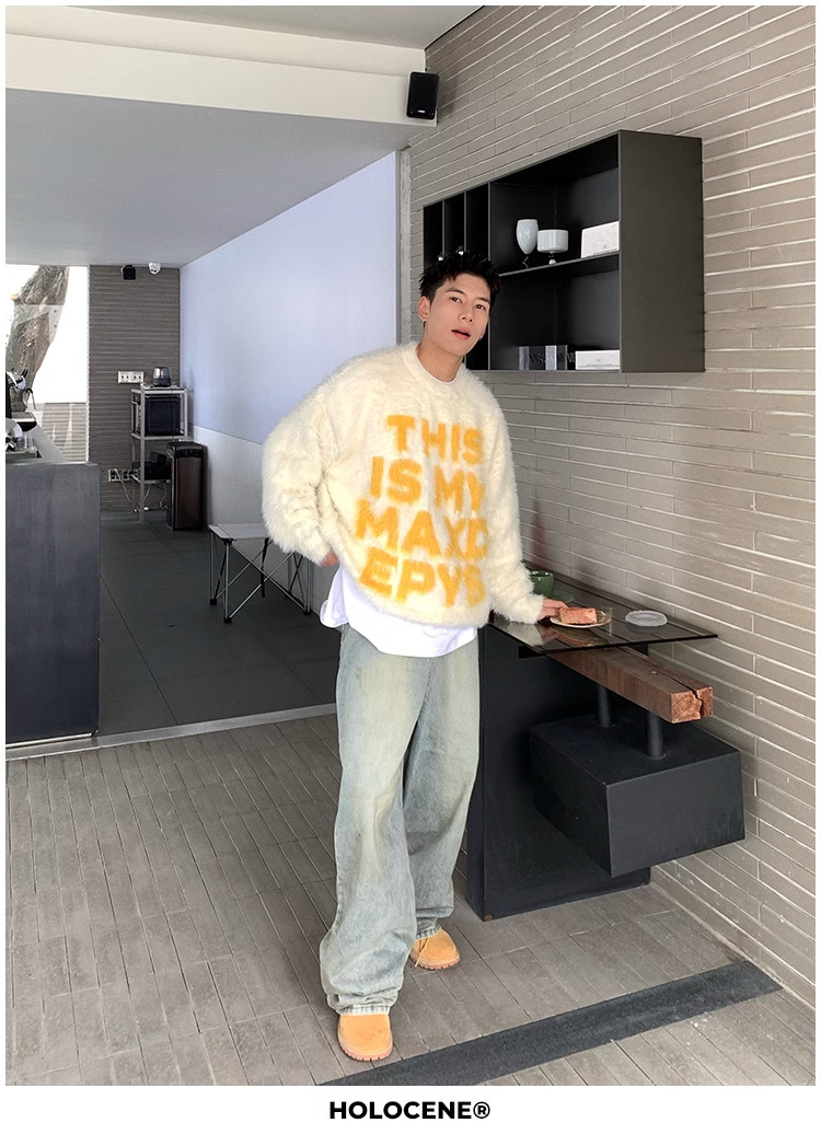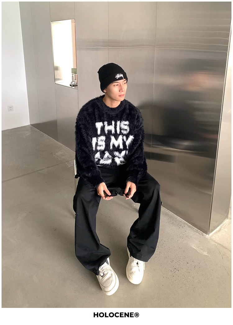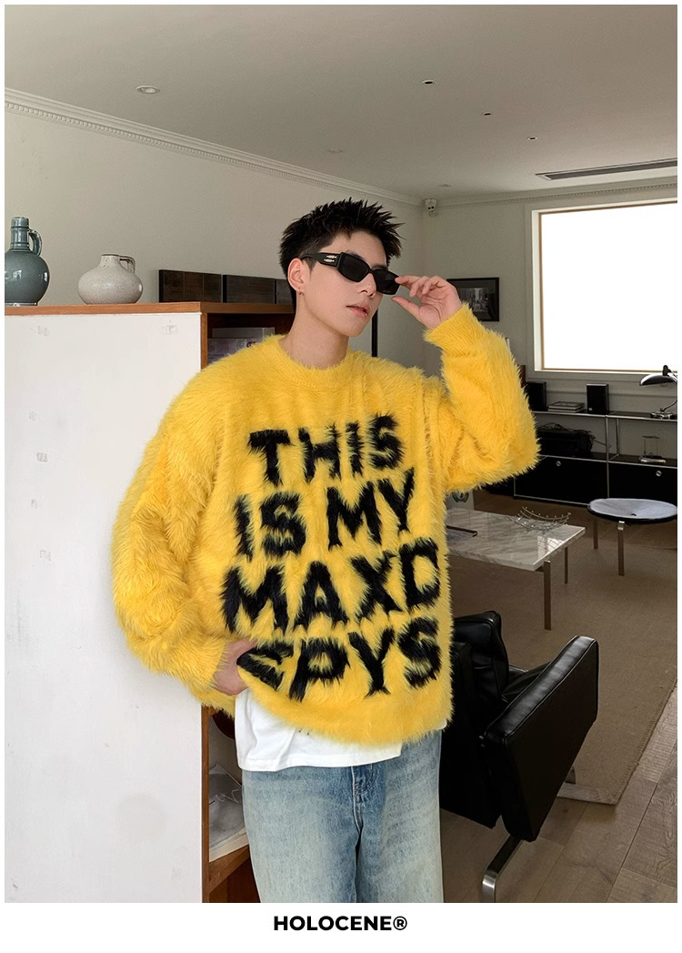 전국 패션 레트로 레터 디자인 센스 게으른 스타일 스웨터 남성 봄과 가을 2024 새로운 미국 스타일 패션 브랜드 스웨터 탑