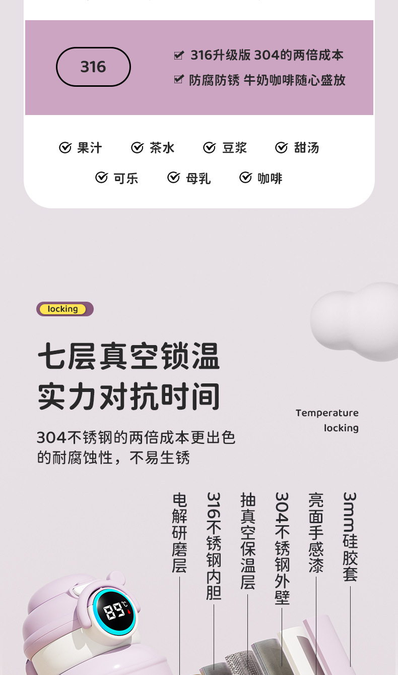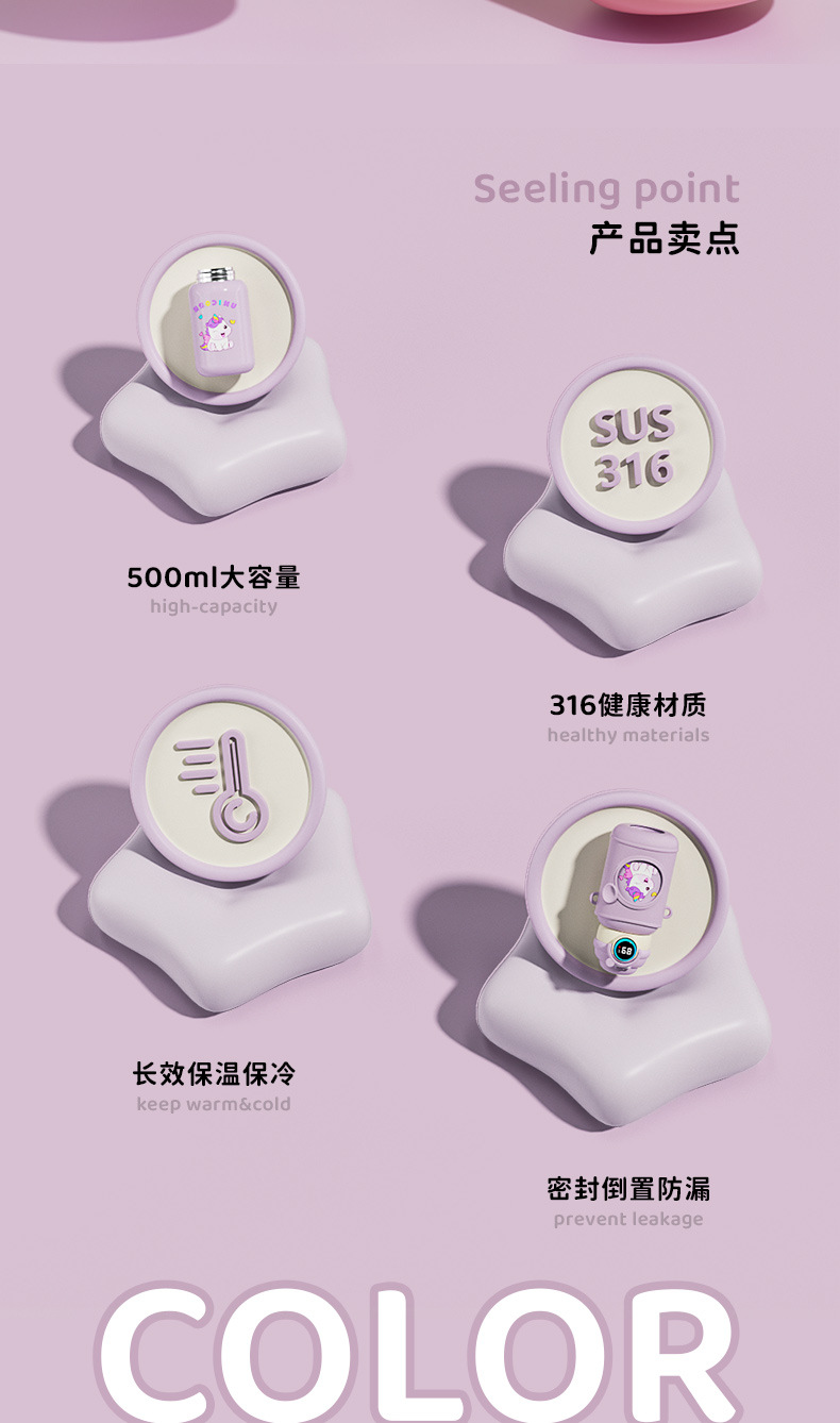 지능형 어린이 보온병 컵 316 스테인레스 스틸 물 컵 남성 학생 휴대용 더블 마시는 컵 높은 색상 가치 어린이 물 컵