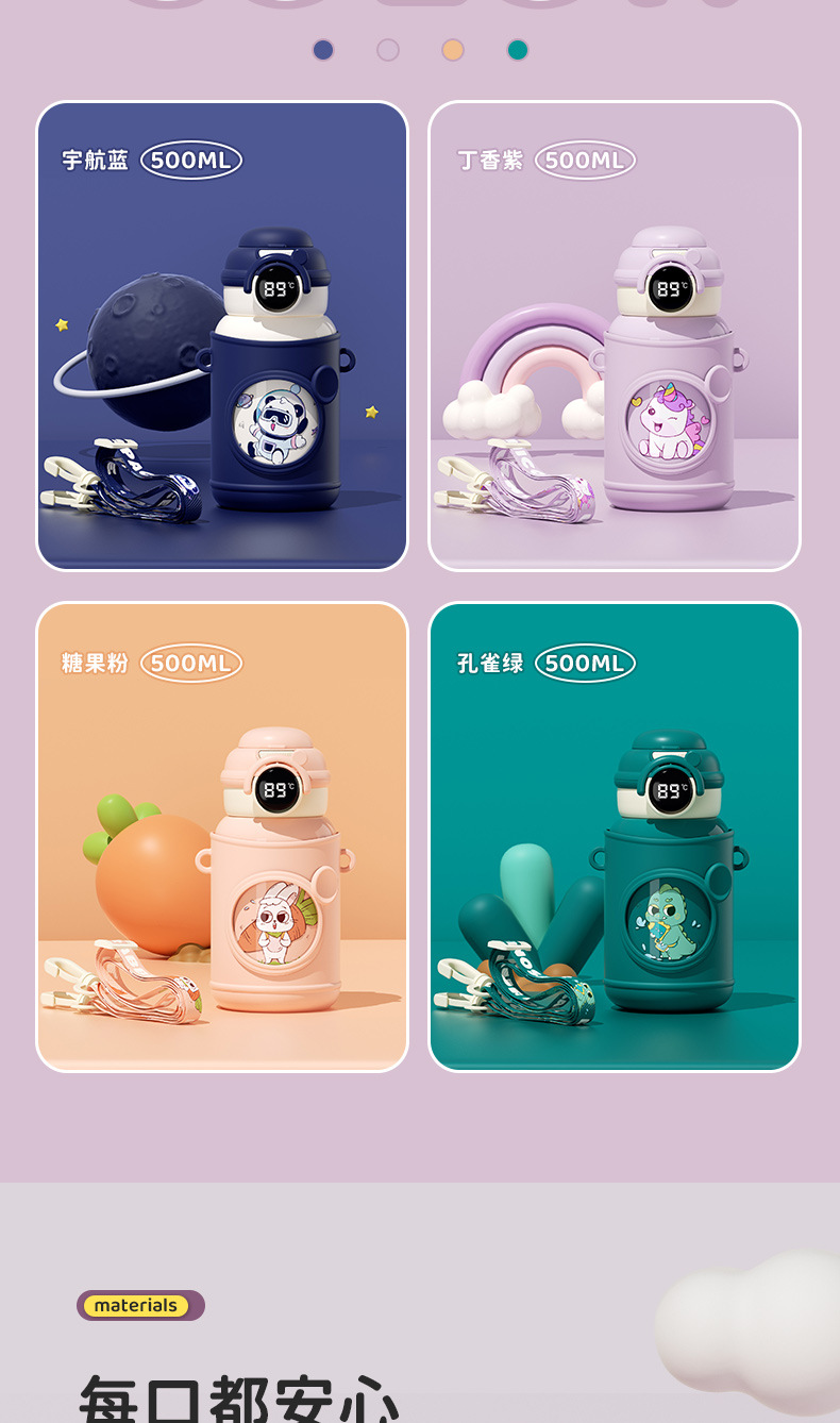 지능형 어린이 보온병 컵 316 스테인레스 스틸 물 컵 남성 학생 휴대용 더블 마시는 컵 높은 색상 가치 어린이 물 컵스토어 가기