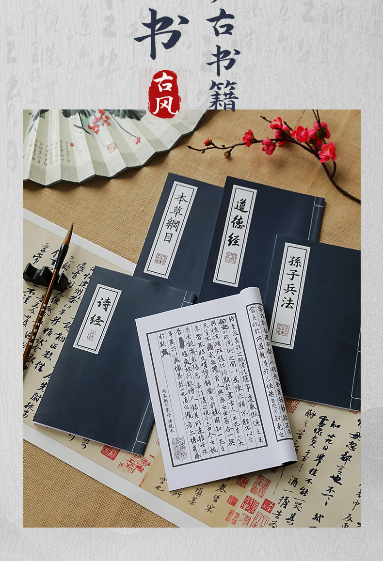 고대 책 사진 장식 소품 책 랜팅 컬렉션 주문 타오 테 칭 고대 스타일 장면 배열 사진 배경스토어 가기
