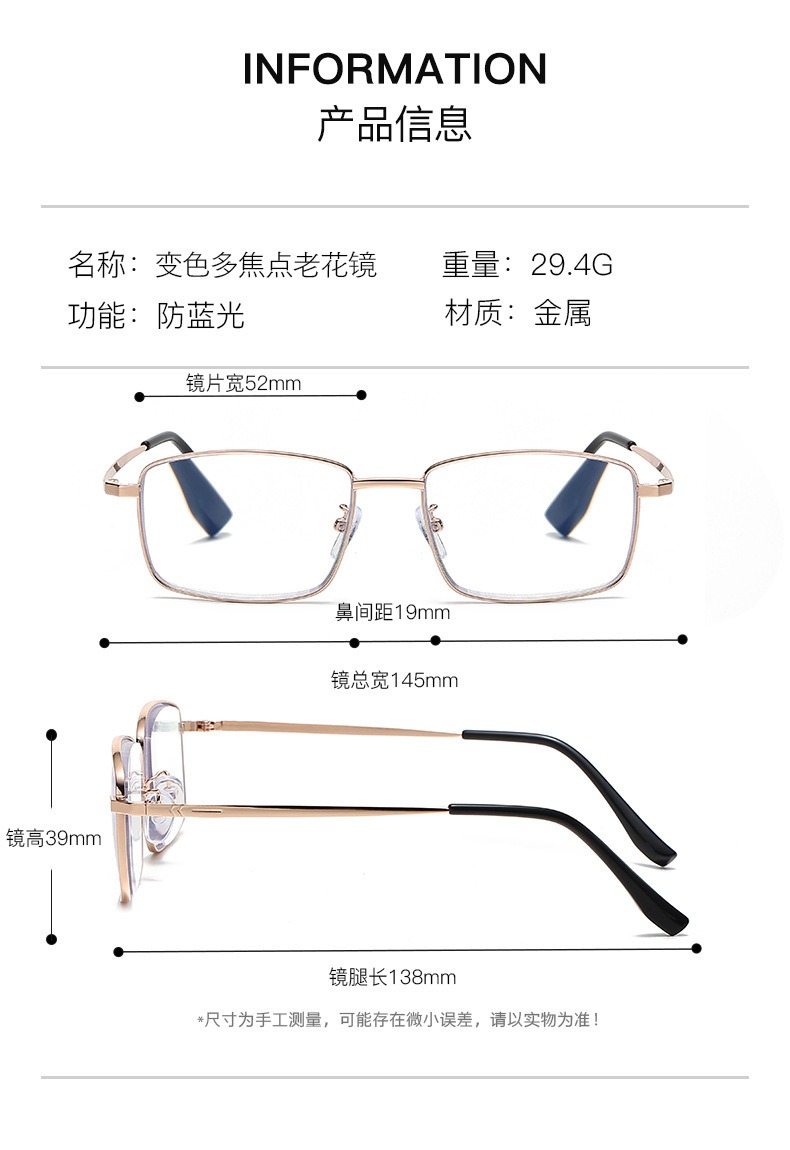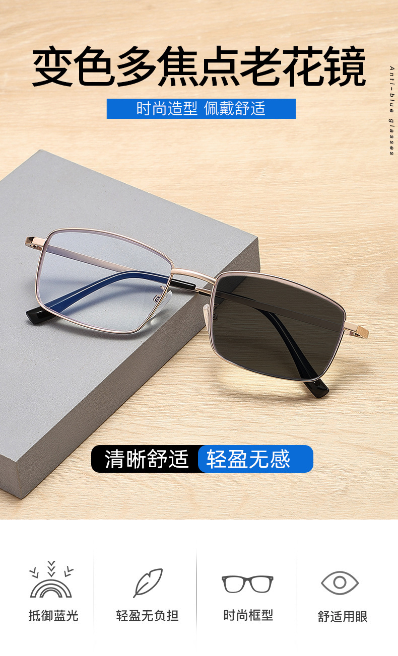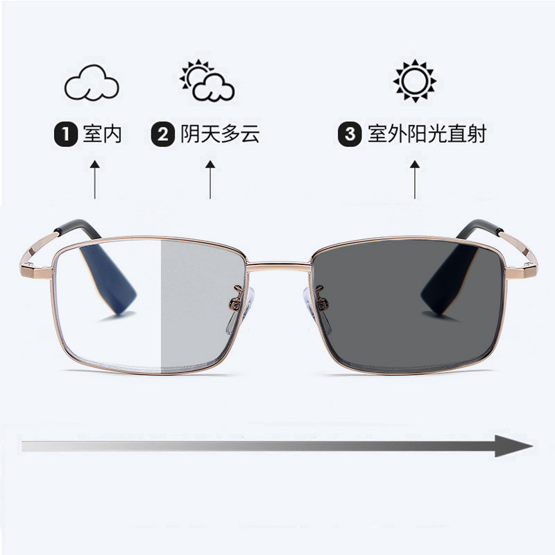 색상 변경 노안 안경 남성의 진보적 인 다 초점 이중 사용 노안 안경 비 자기 티타늄 프레임 안티 블루 라이트 플로럴 안경