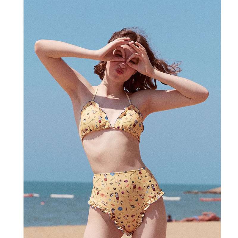 귀여운 비행 가장자리 간단한 섹시한 뜨거운 소녀 3 점 Tether 높은 허리 비키니 비키니 분할 수영복스토어 가기