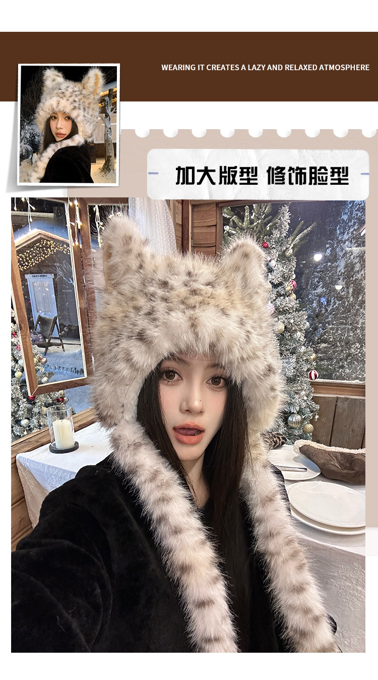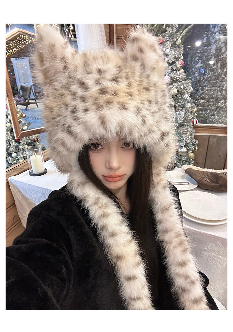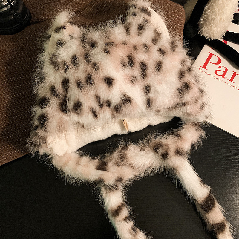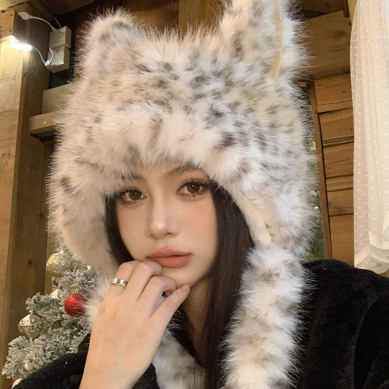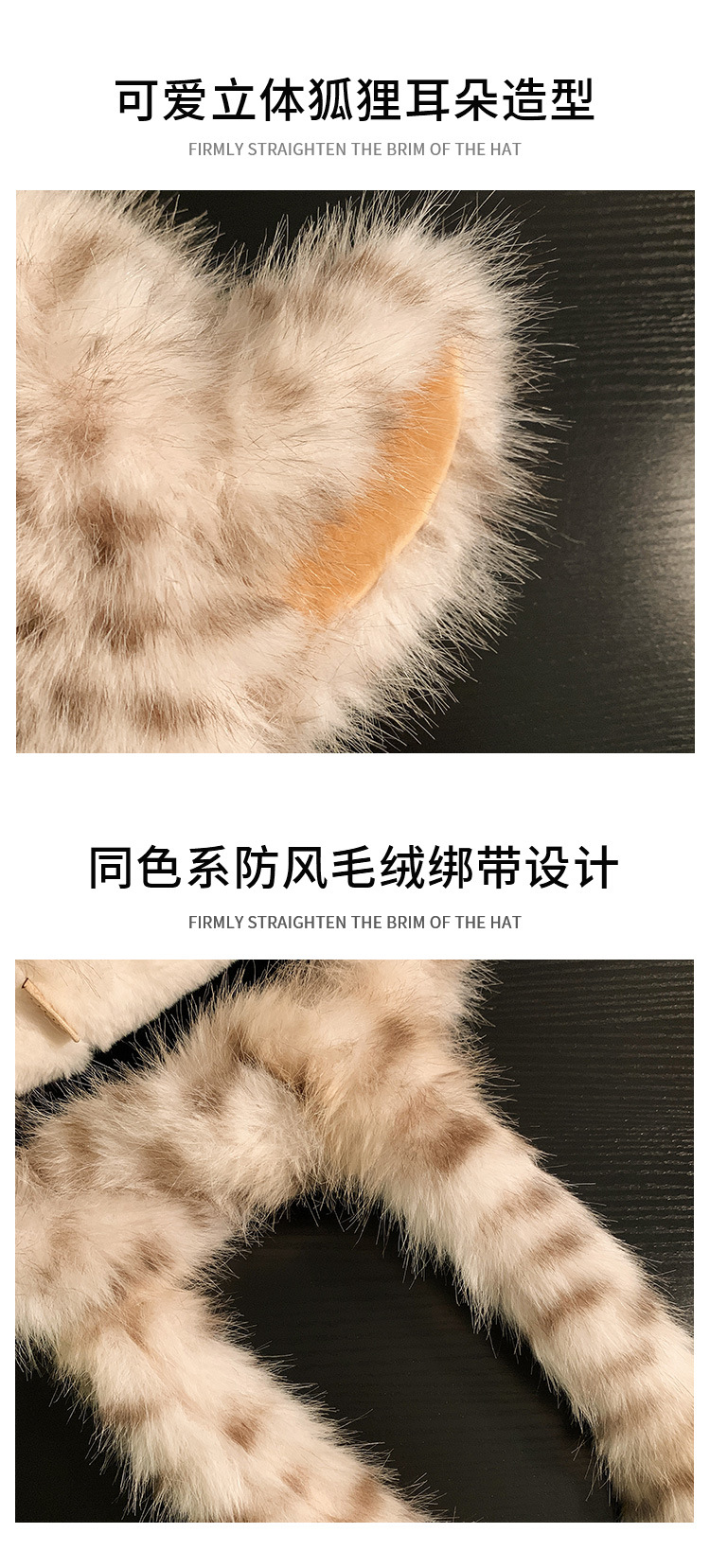 귀여운 여우 귀 레오파드 무늬 푹신한 모자 어린이 2024 겨울 얼굴 작은 따뜻한 감기 방지 귀 보호 레이 펑 모자스토어 가기
