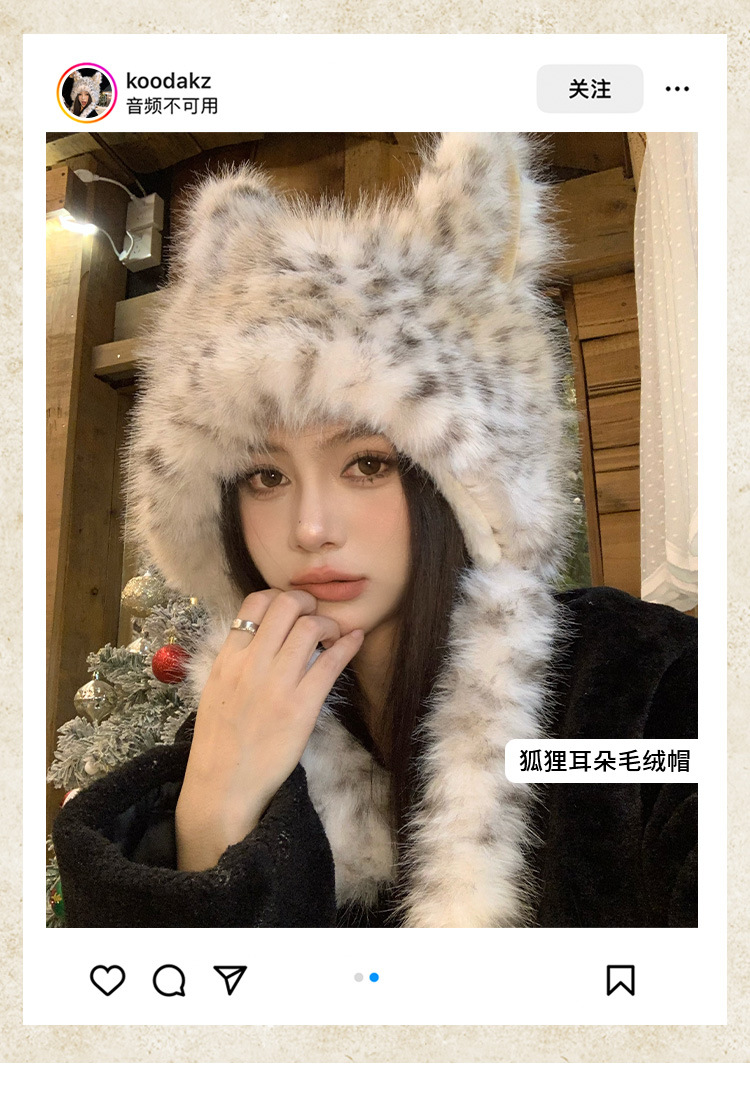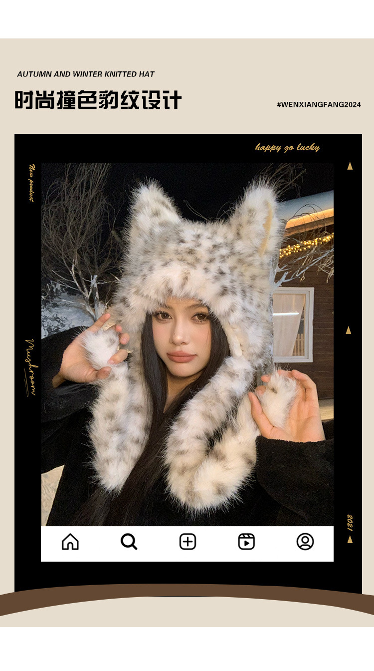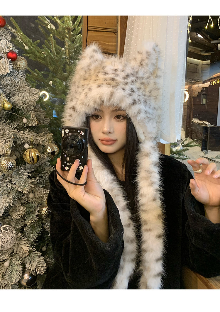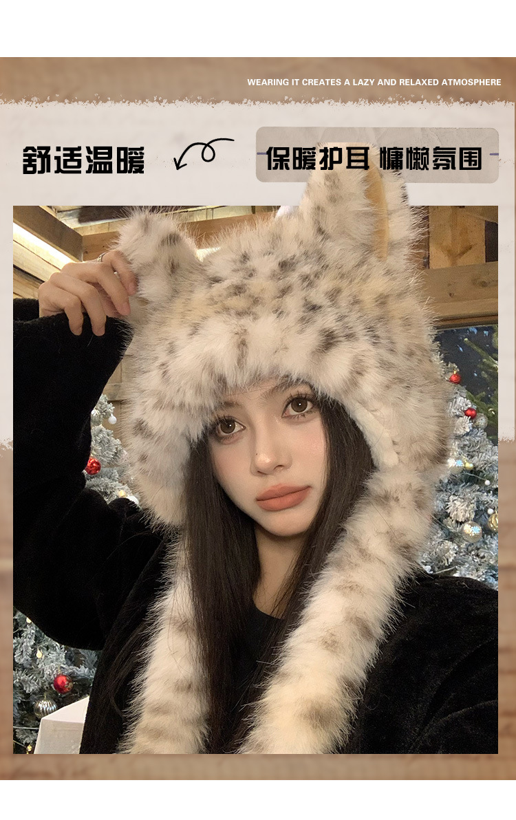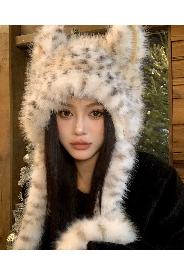 귀여운 여우 귀 레오파드 무늬 푹신한 모자 어린이 2024 겨울 얼굴 작은 따뜻한 감기 방지 귀 보호 레이 펑 모자스토어 가기