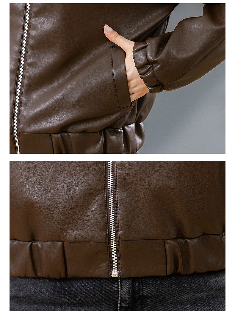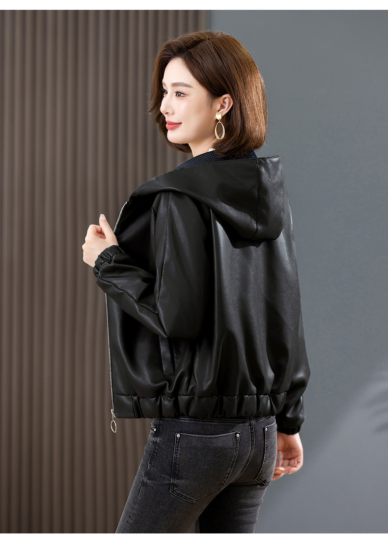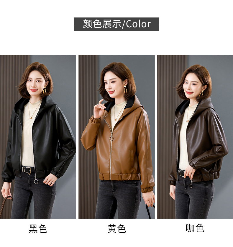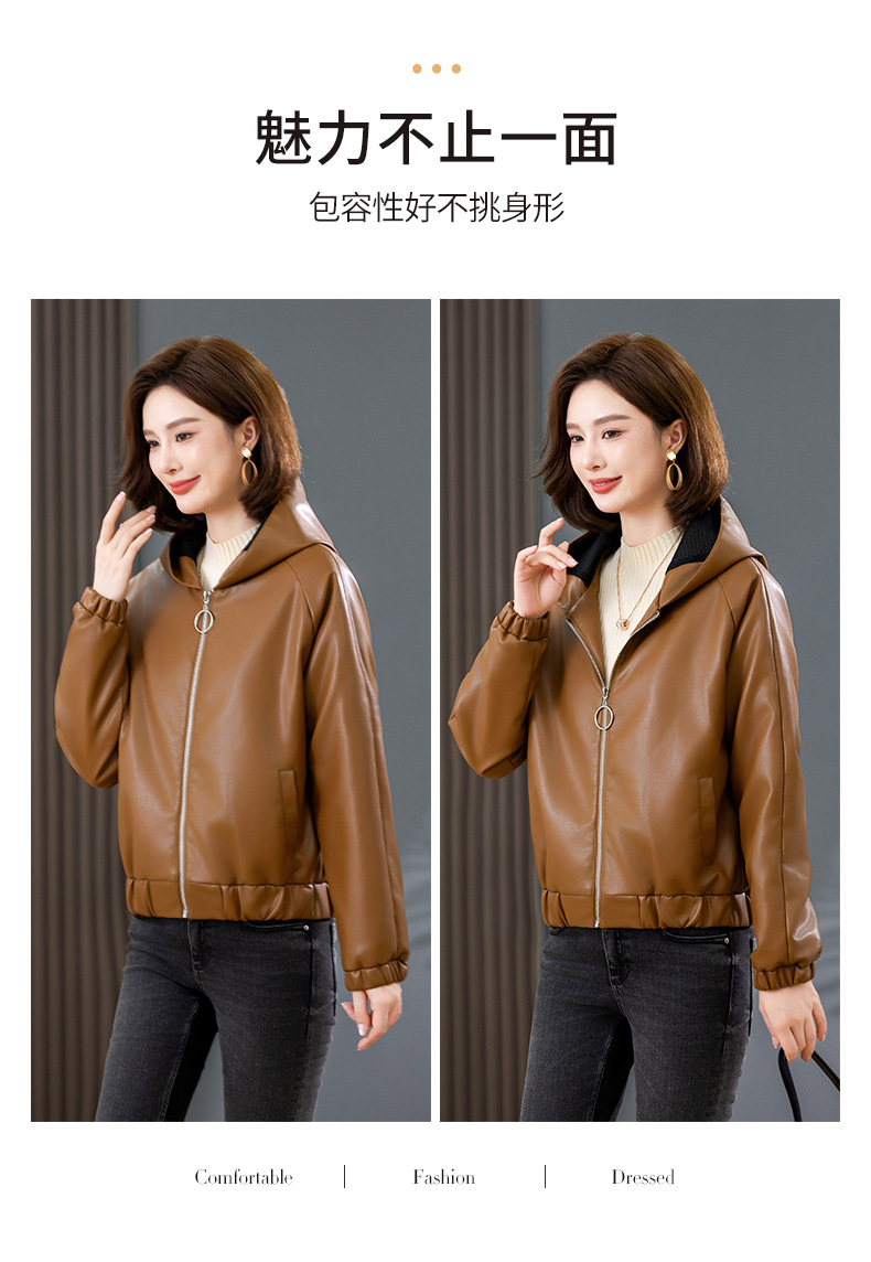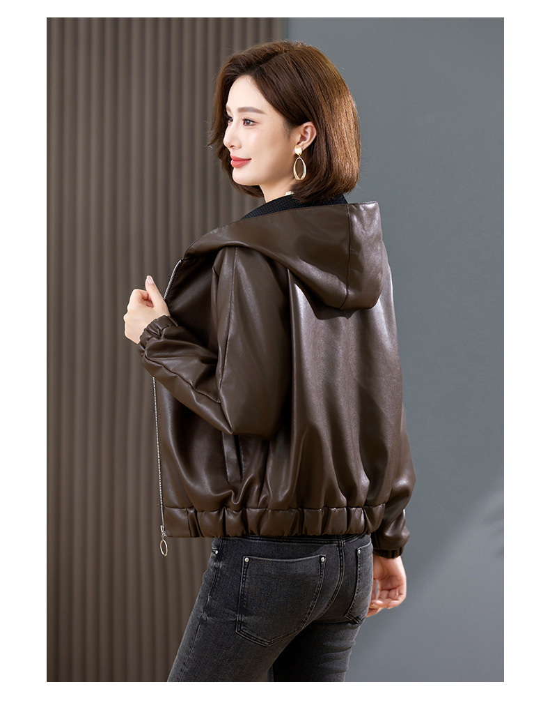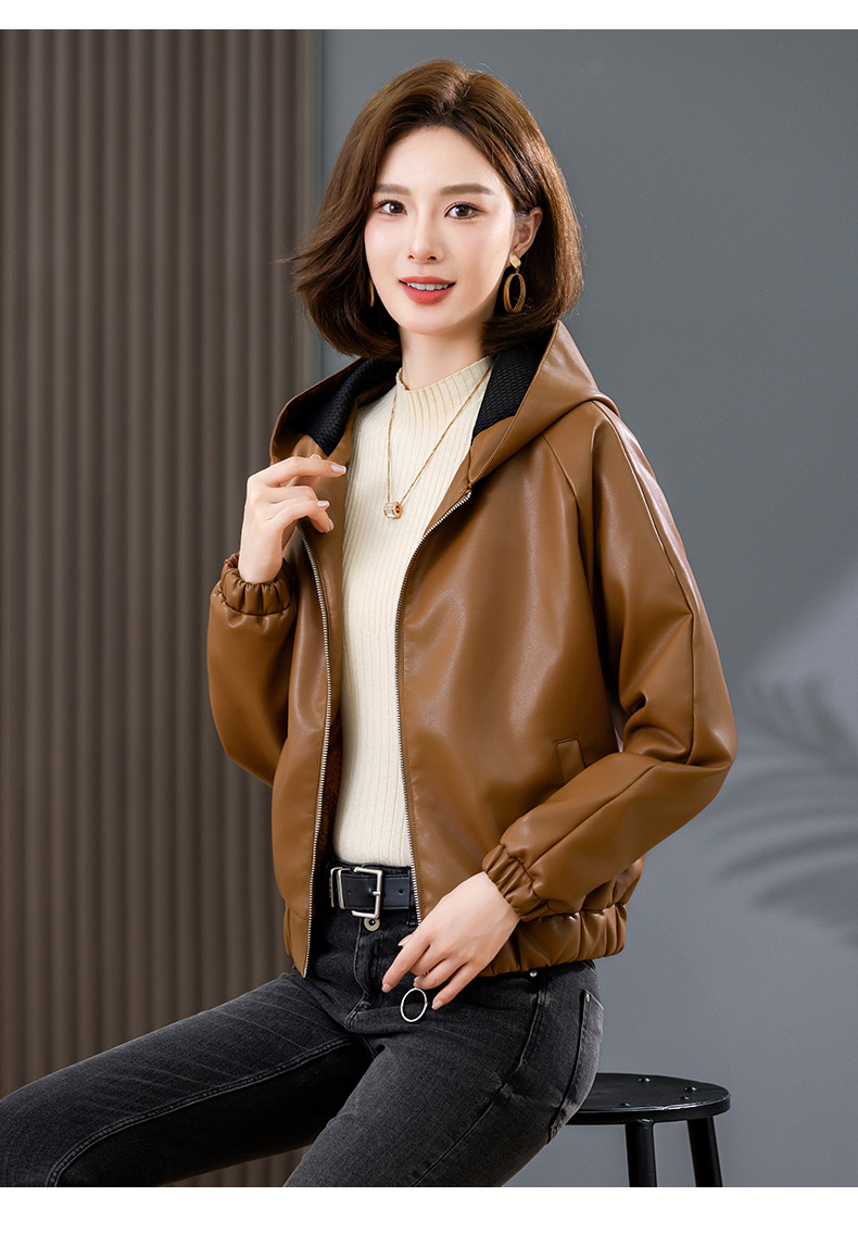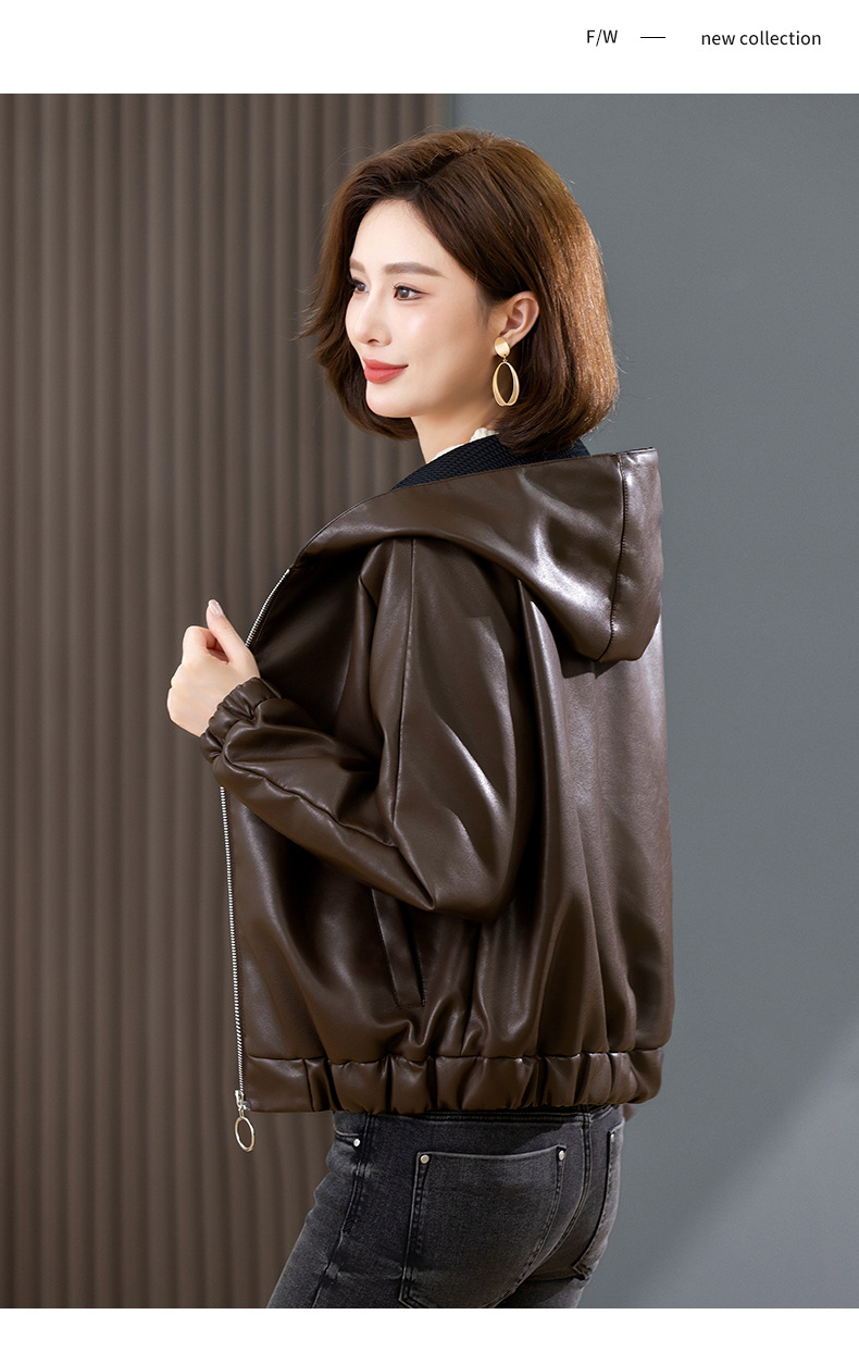 중년 어머니 기모 따뜻한 가죽 여성의 가을과 겨울 패션 짧은 느슨한 후드 가죽 자켓