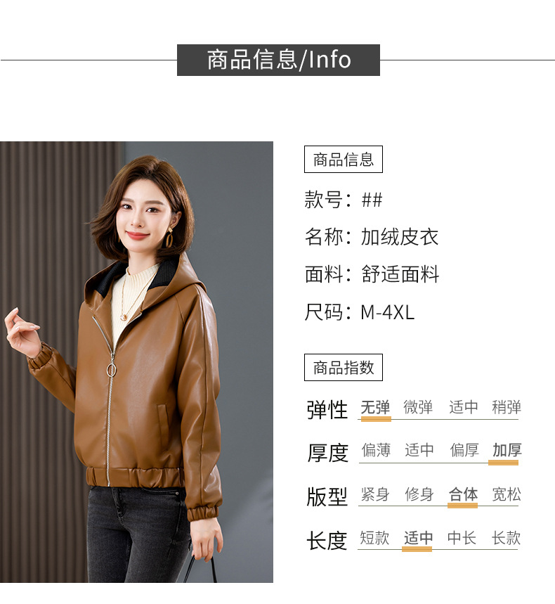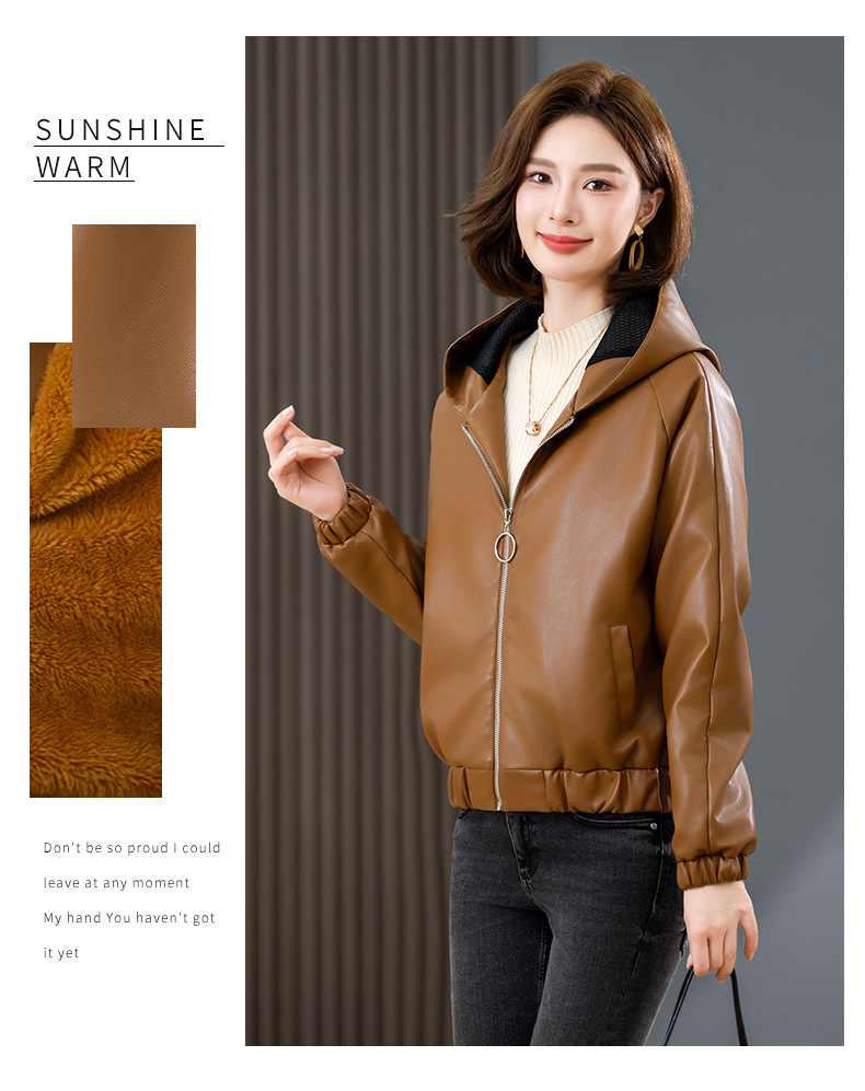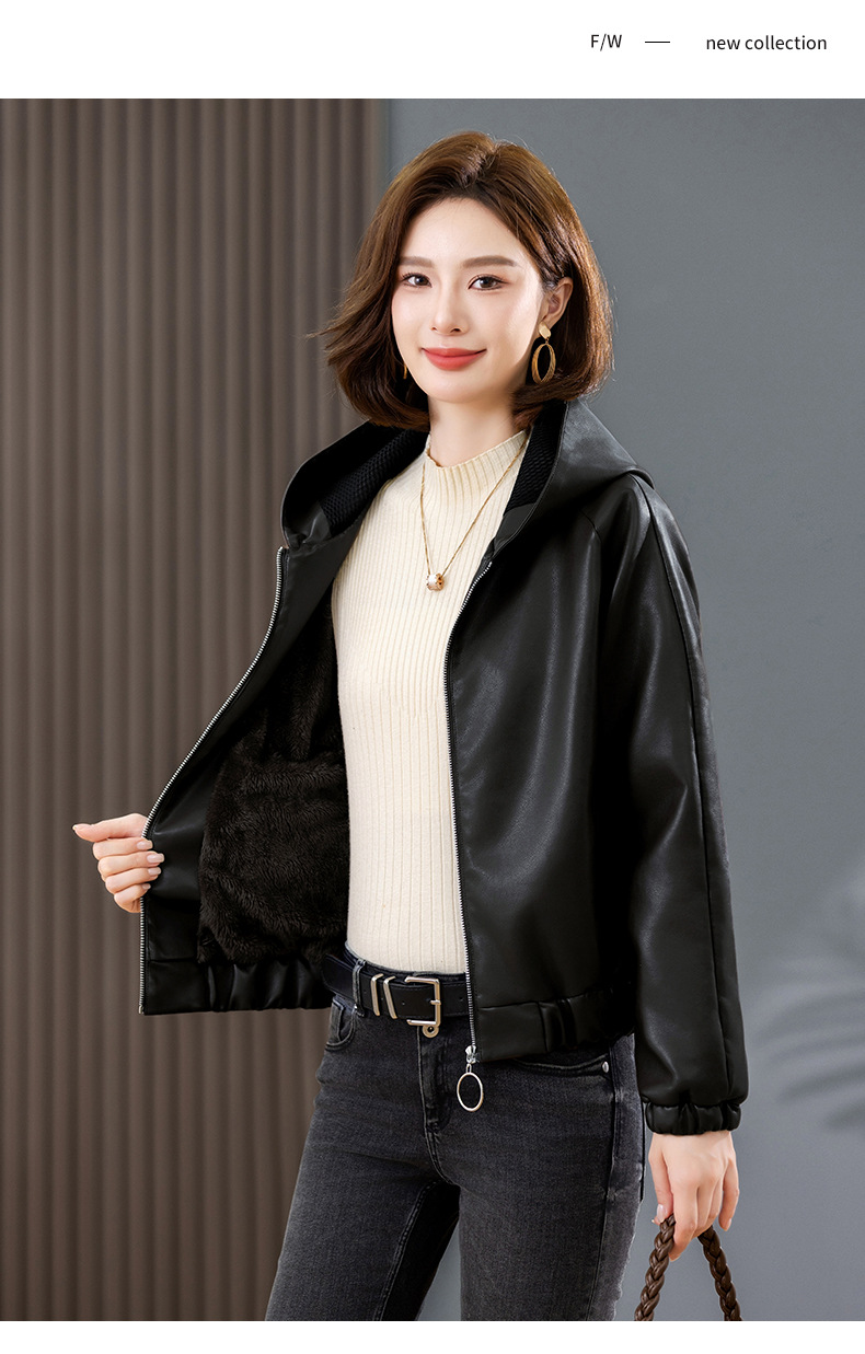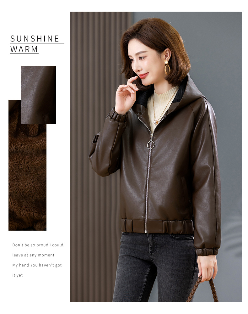 중년 어머니 기모 따뜻한 가죽 여성의 가을과 겨울 패션 짧은 느슨한 후드 가죽 자켓스토어 가기