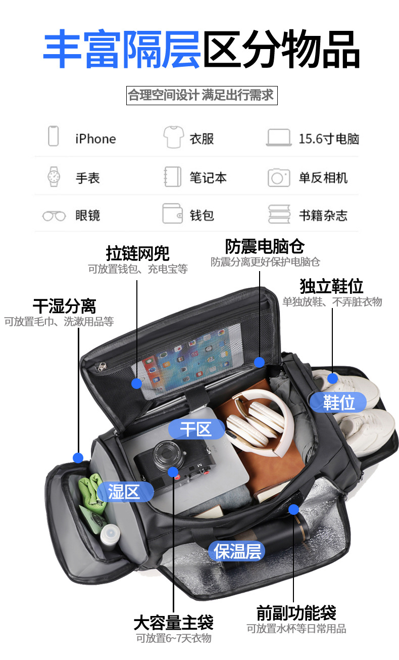 남성용 스포츠 및 피트니스 가방, 고급 건식 및 습식 분리, 패셔너블한 여행 가방, 트롤리 내마모성 룰루 가방, 출산 가방스토어 가기