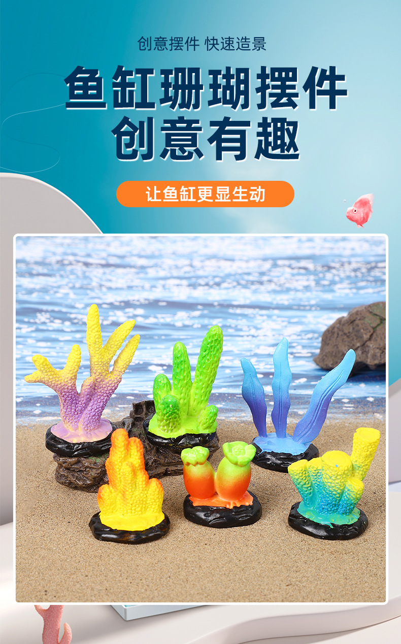 패션 창조적 인 미니 시뮬레이션 산호 물고기 탱크 수족관 수족관 수족관 해양 잔디 장식 DIY 장식품 해저 풍경스토어 가기