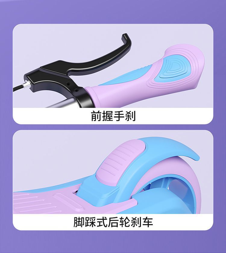 • 핑크색과 보라색 접이식 이중 브레이크 플래시 휠