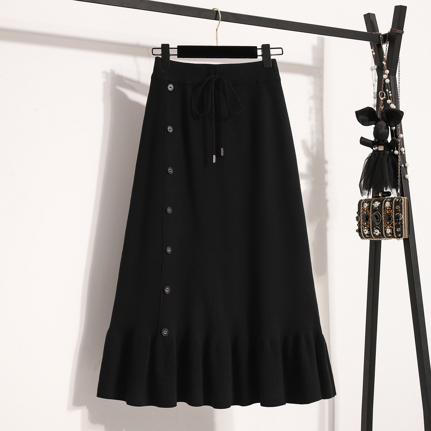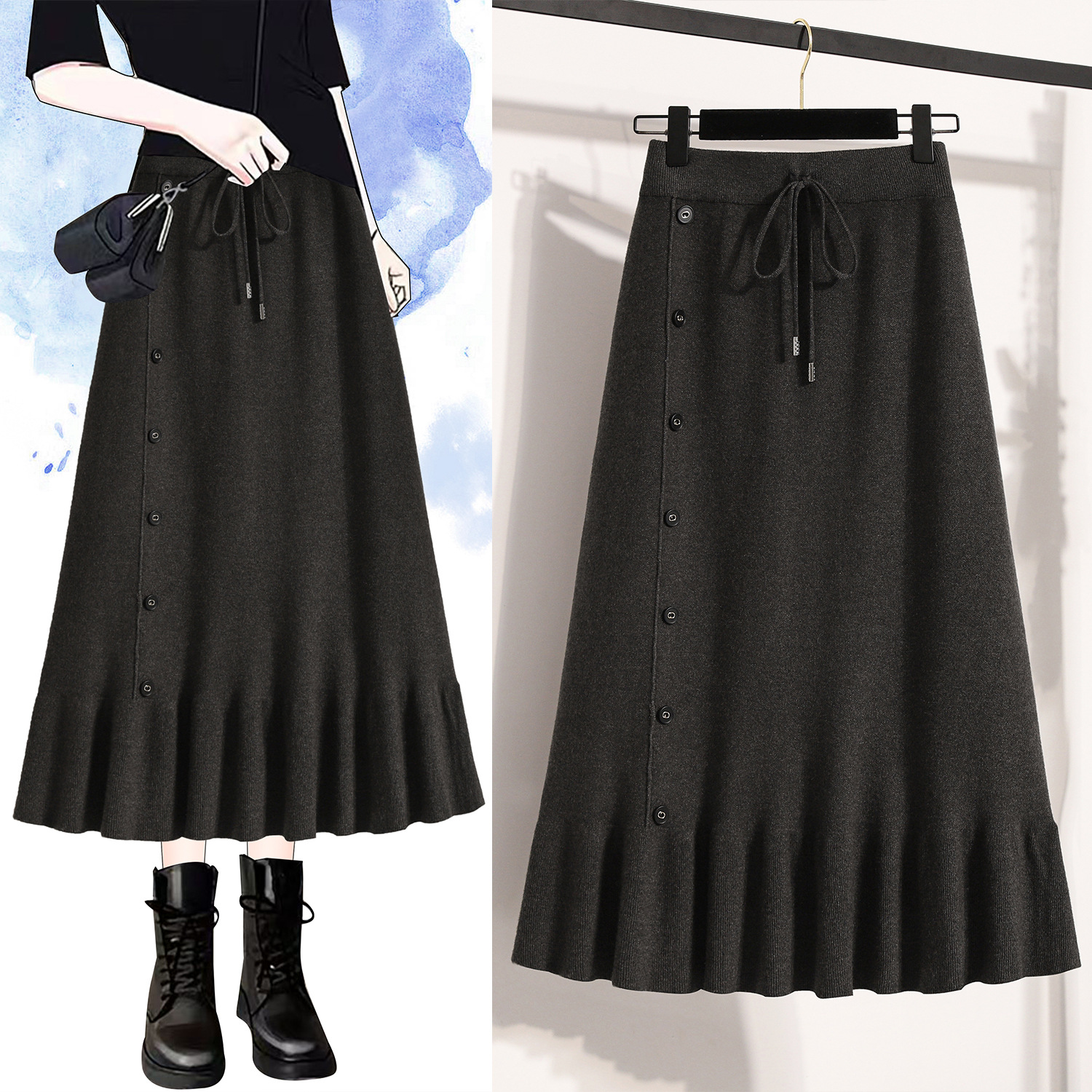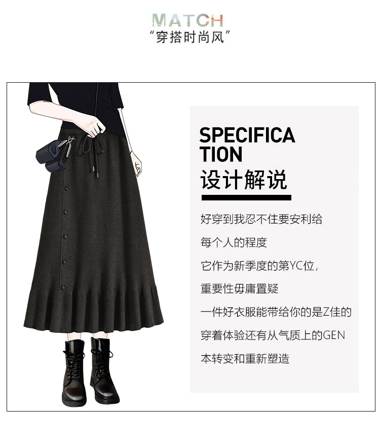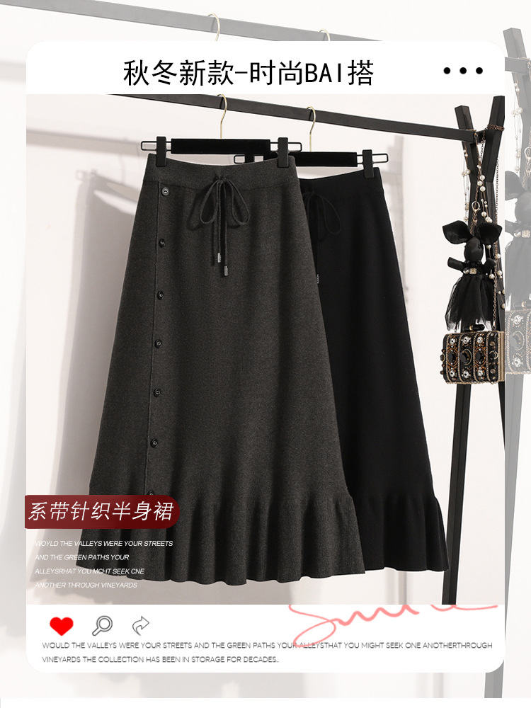 플러스 사이즈 양모 니트 스커트 여성 가을 및 겨울 중간 길이의 엉덩이 스커트 작은 높은 허리 A 라인 피쉬 테일스토어 가기