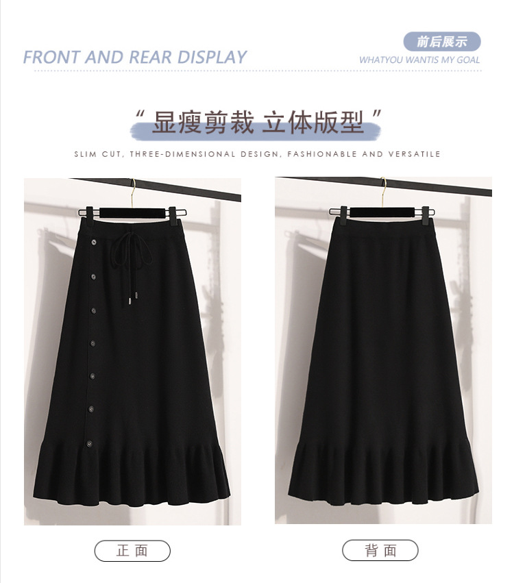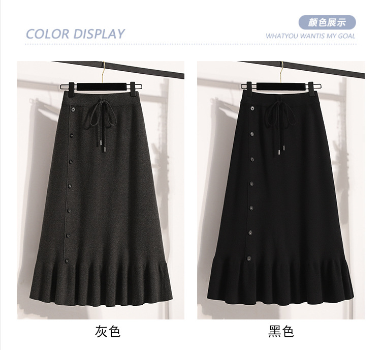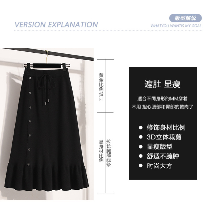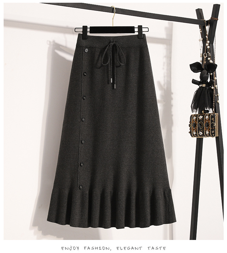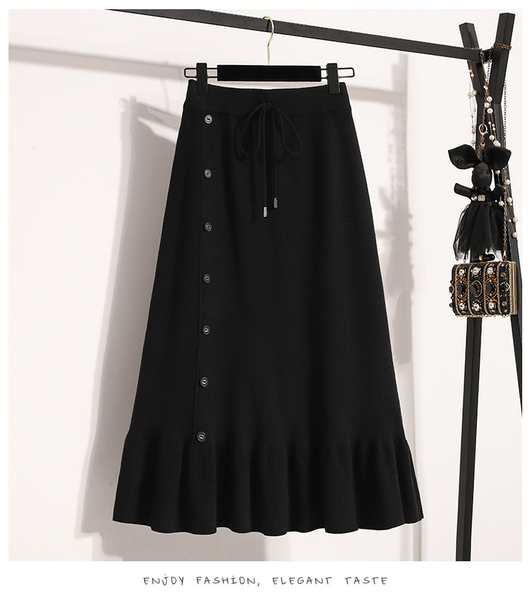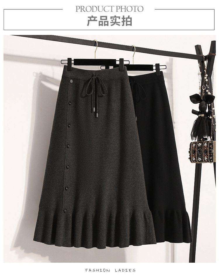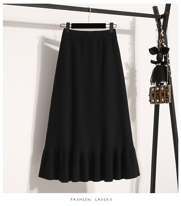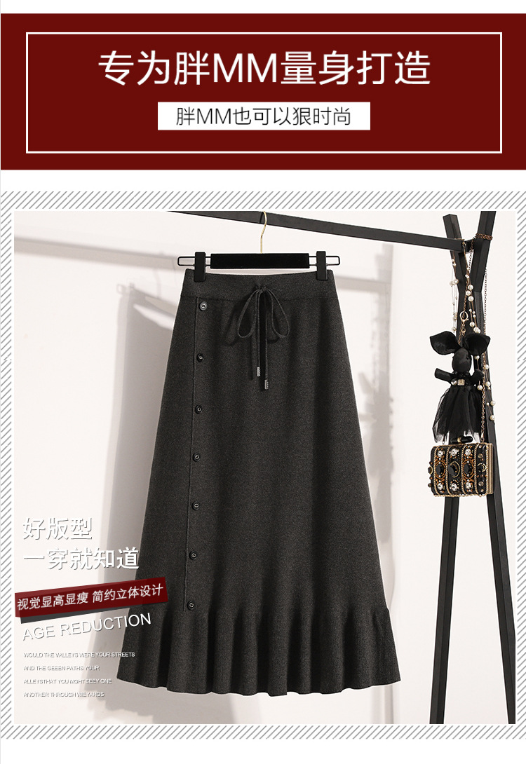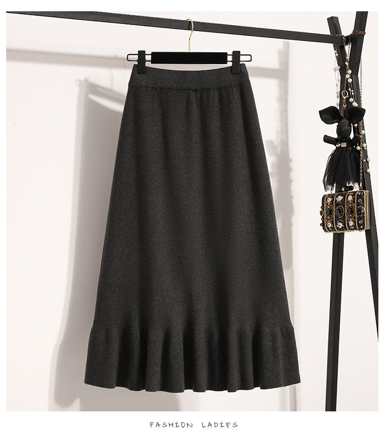 플러스 사이즈 양모 니트 스커트 여성 가을 및 겨울 중간 길이의 엉덩이 스커트 작은 높은 허리 A 라인 피쉬 테일