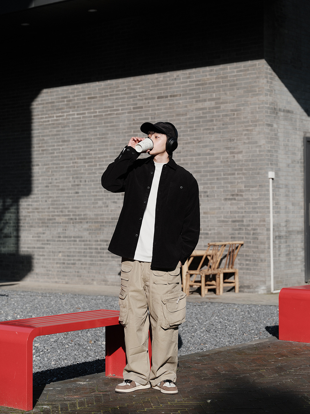 TRS 남성복丨24AW 가을 겨울 레트로 워싱 셔츠 스트립 루즈 실루엣 시티보이 셔츠 재킷 남성스토어 가기