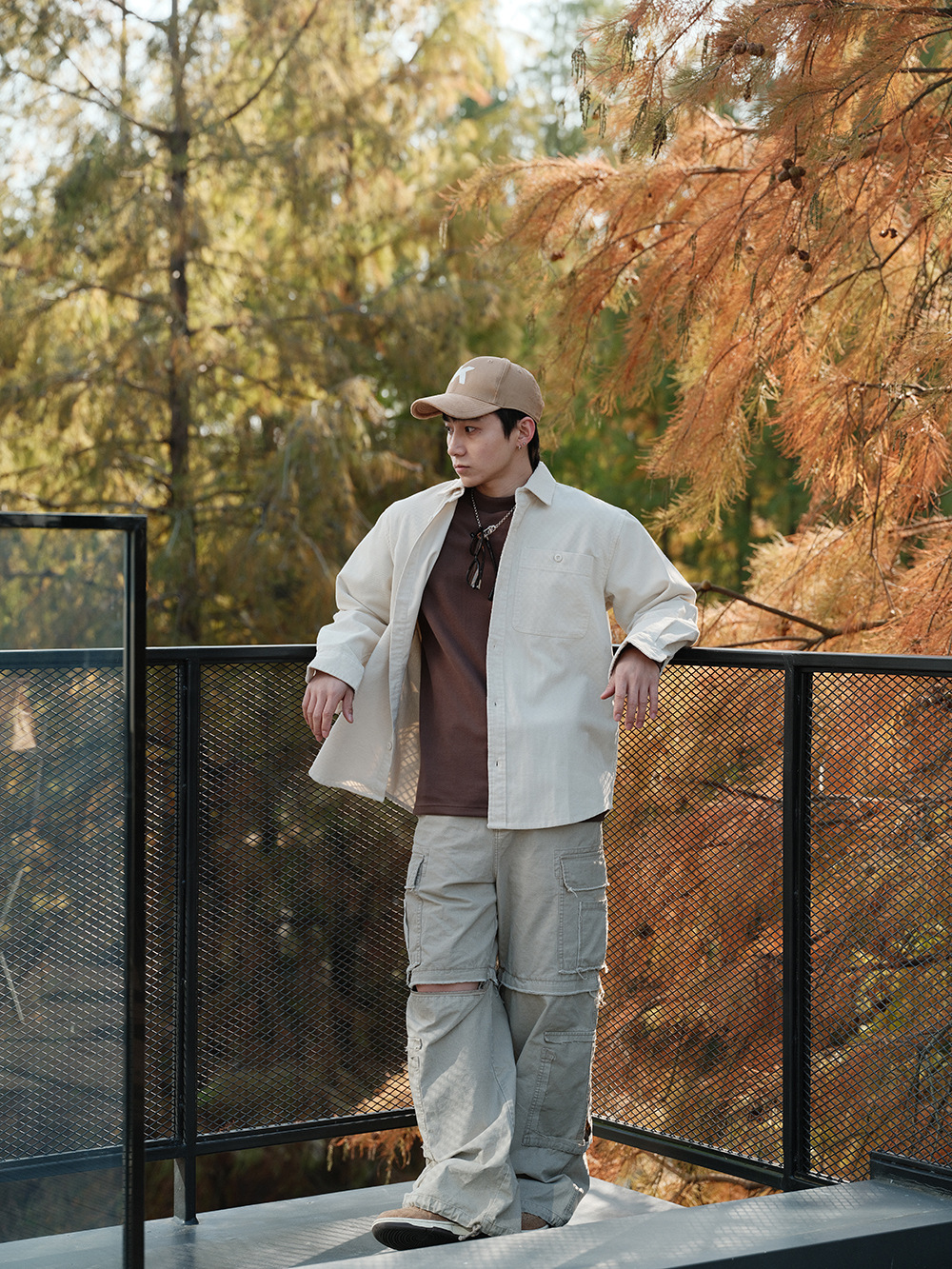 TRS 남성복丨24AW 가을 겨울 레트로 워싱 셔츠 스트립 루즈 실루엣 시티보이 셔츠 재킷 남성