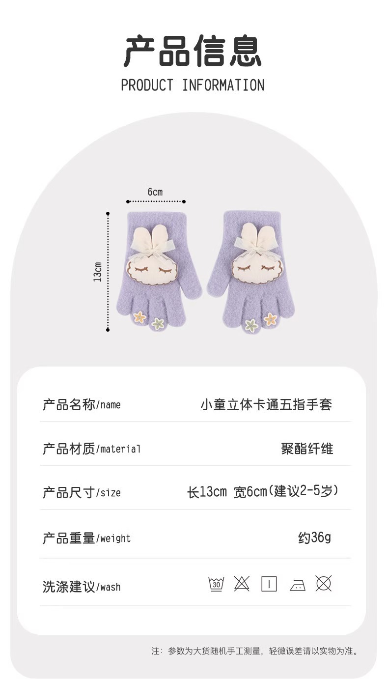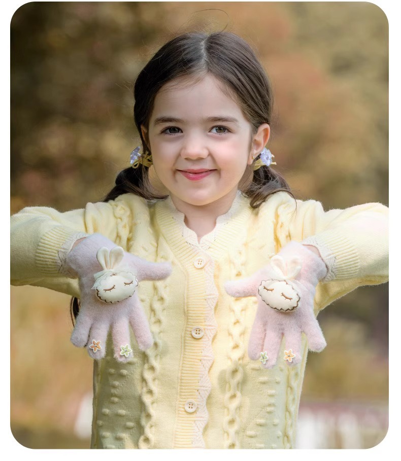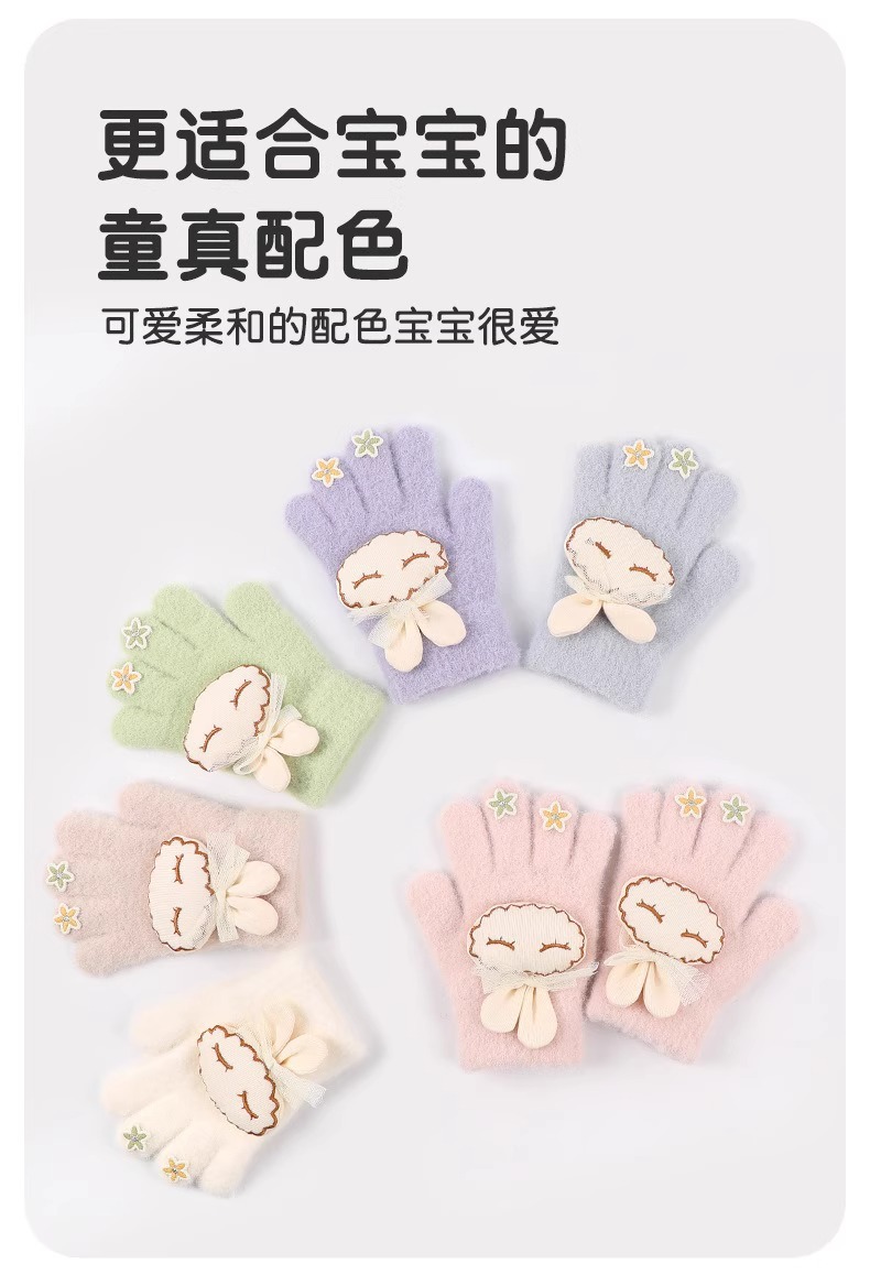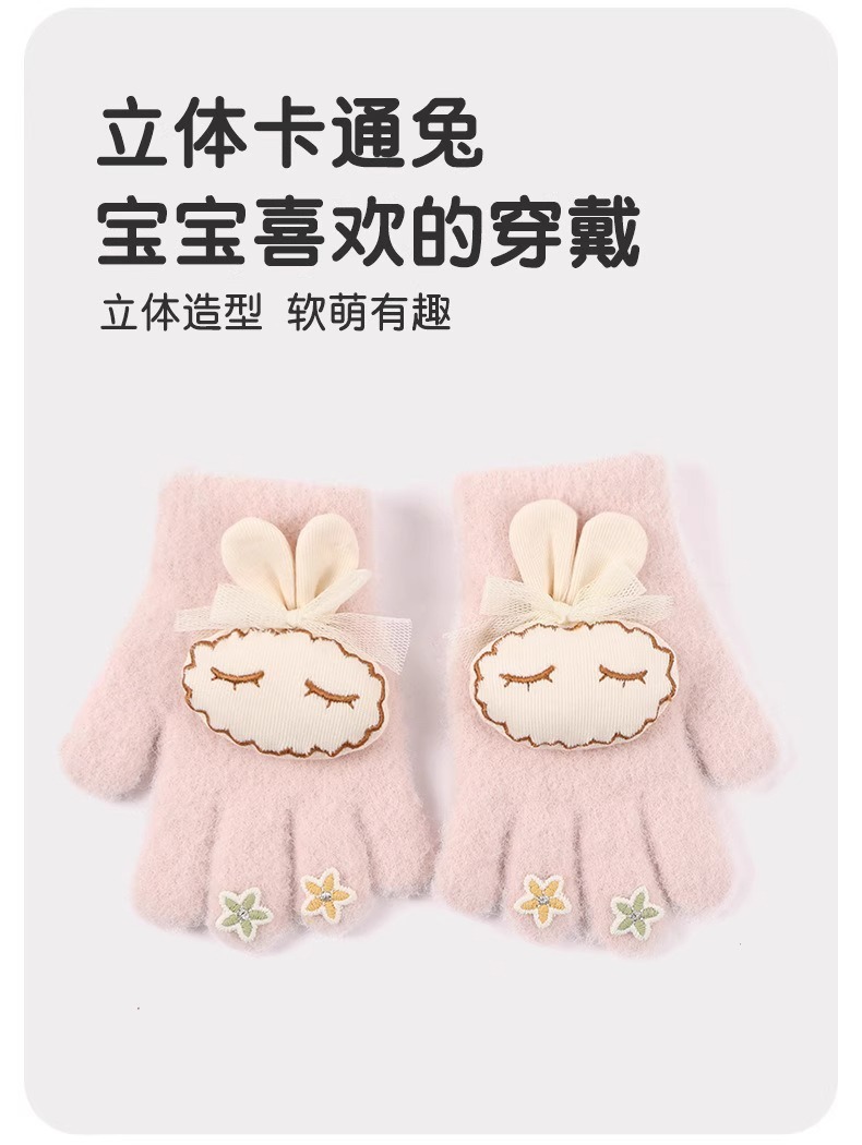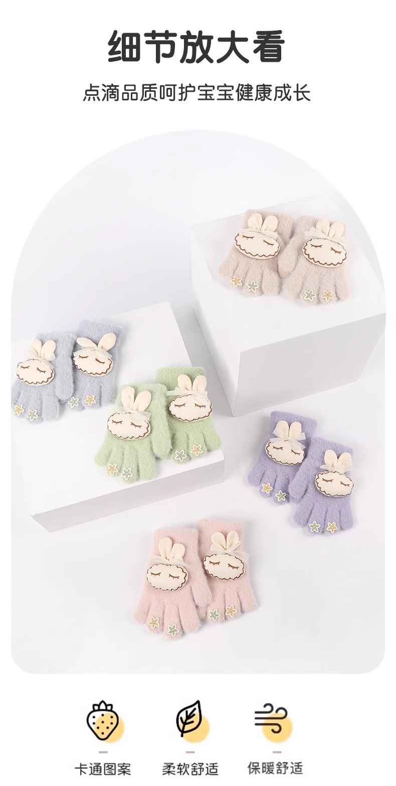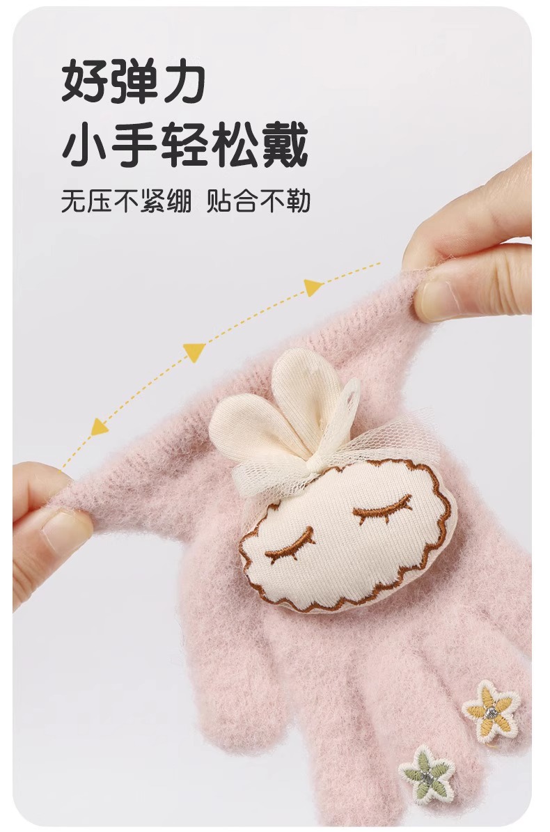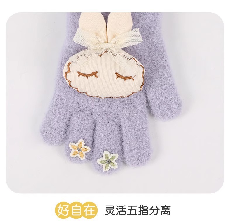 가을과 겨울 어린이 장갑 귀여운 따뜻한 소녀 5 토끼 두꺼운 기모 손가락 세트 아기 어린이 다섯 손가락 세트 2