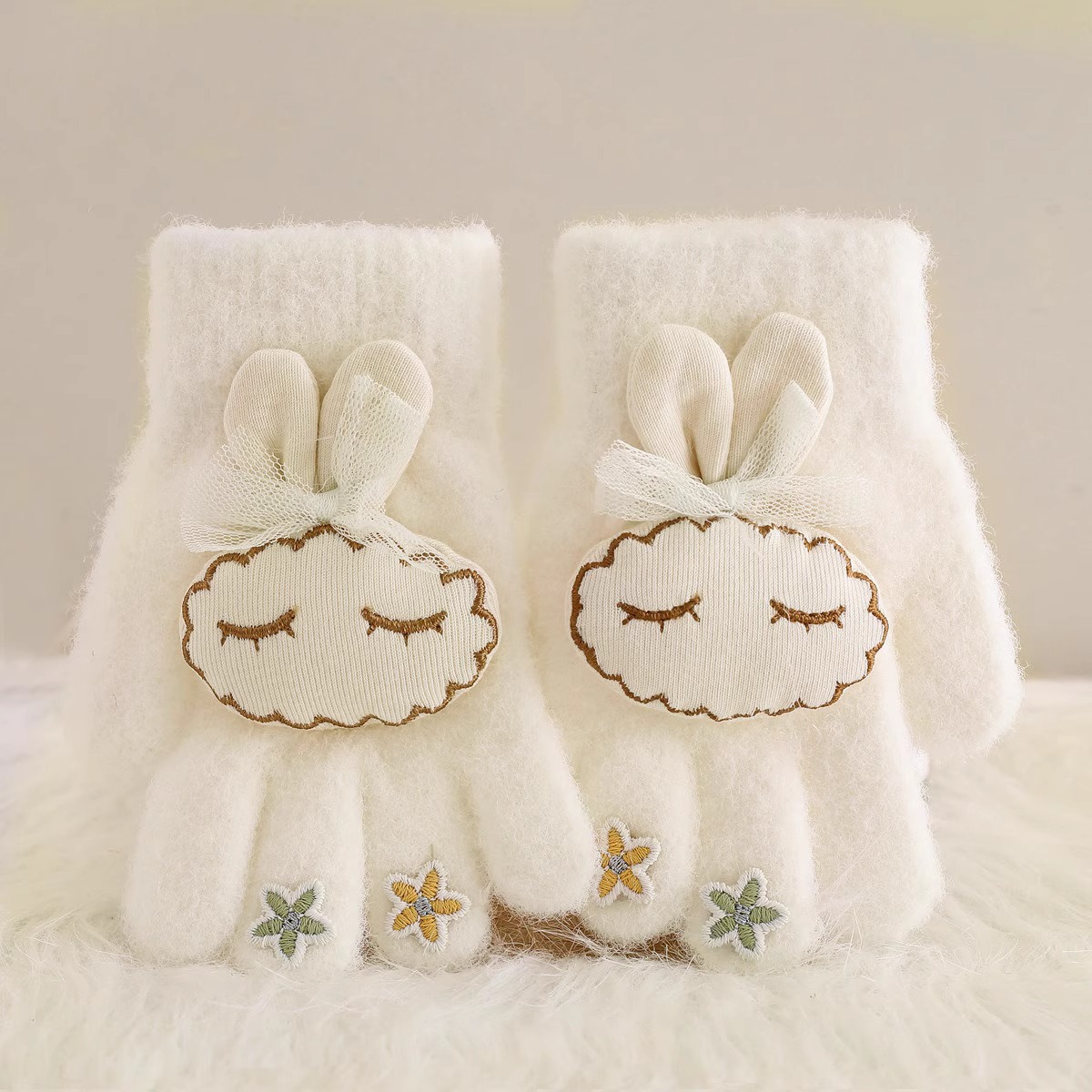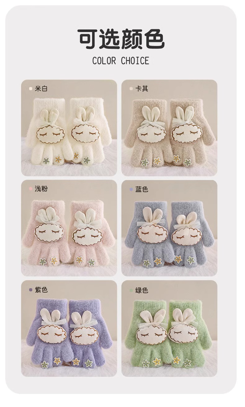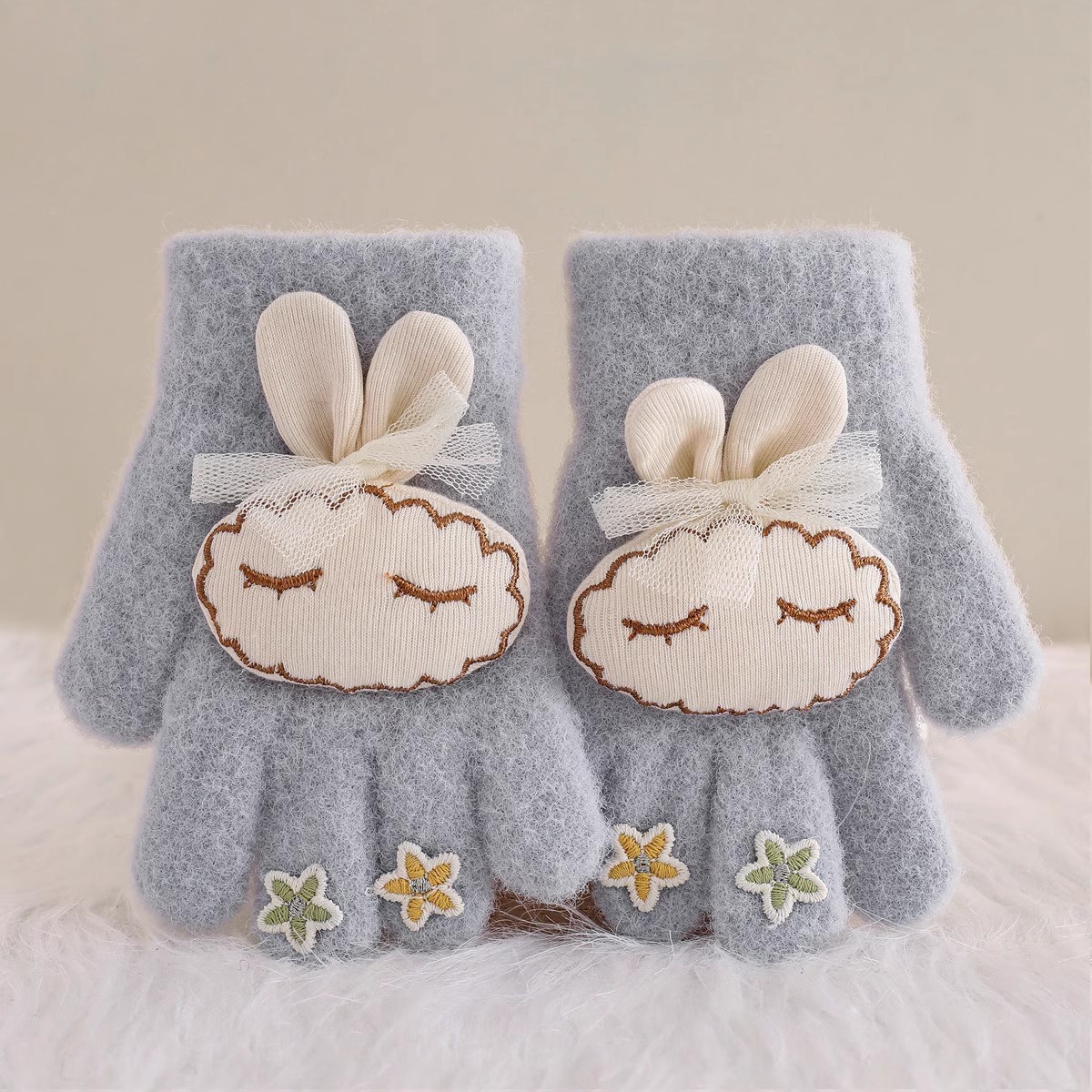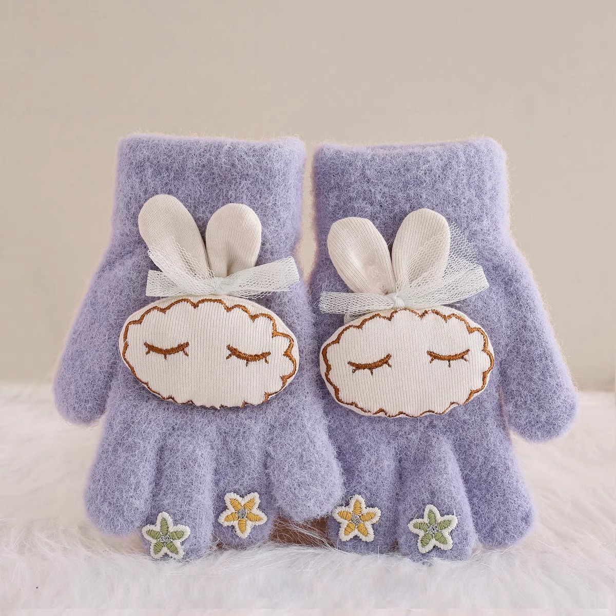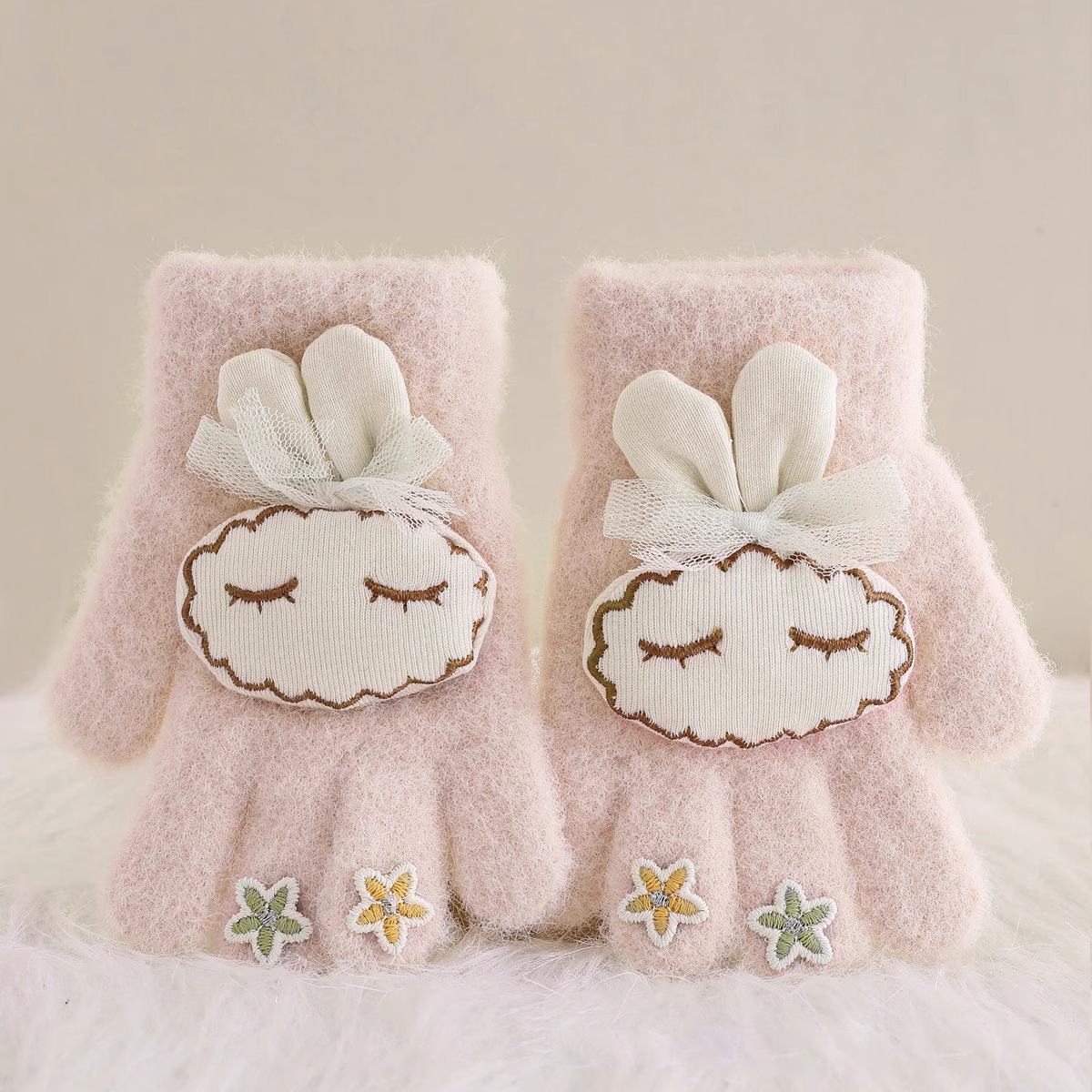 가을과 겨울 어린이 장갑 귀여운 따뜻한 소녀 5 토끼 두꺼운 기모 손가락 세트 아기 어린이 다섯 손가락 세트 2
