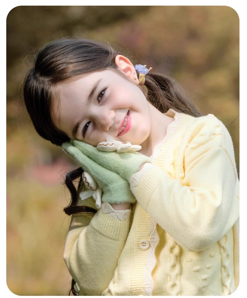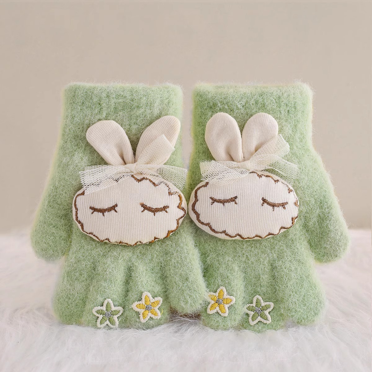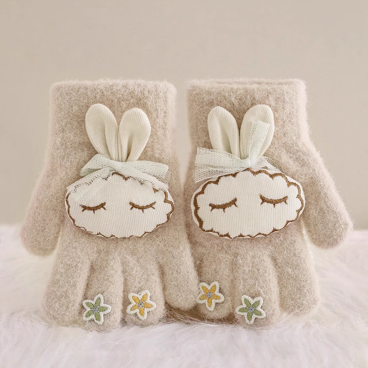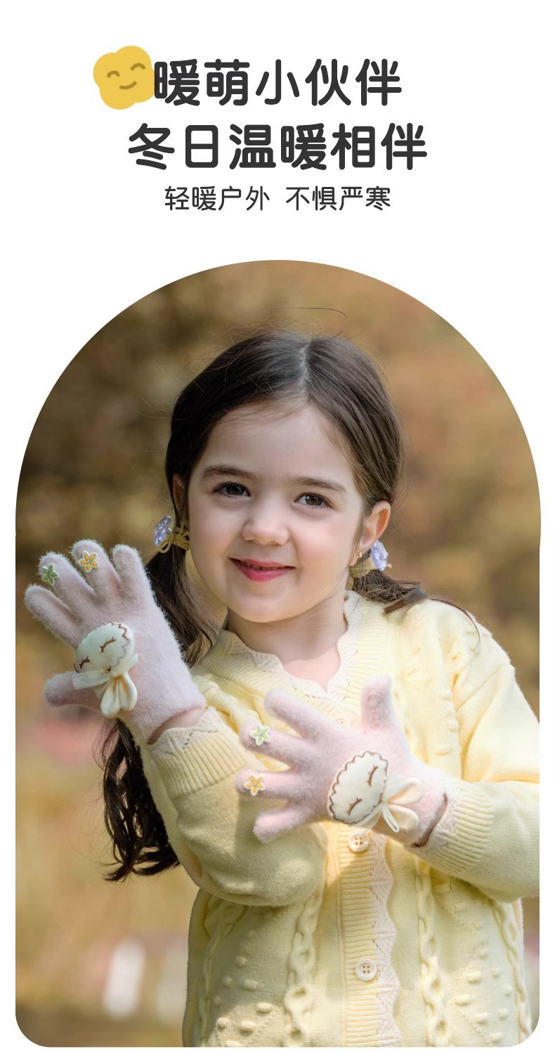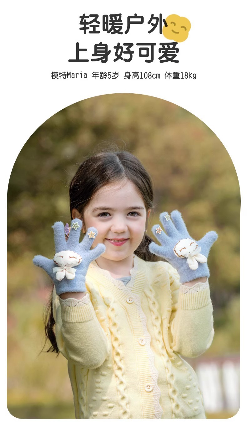 가을과 겨울 어린이 장갑 귀여운 따뜻한 소녀 5 토끼 두꺼운 기모 손가락 세트 아기 어린이 다섯 손가락 세트 2