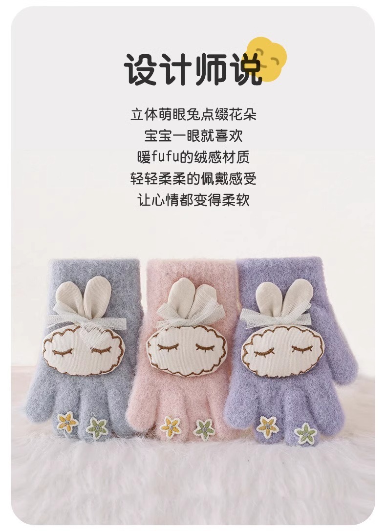 가을과 겨울 어린이 장갑 귀여운 따뜻한 소녀 5 토끼 두꺼운 기모 손가락 세트 아기 어린이 다섯 손가락 세트 2스토어 가기