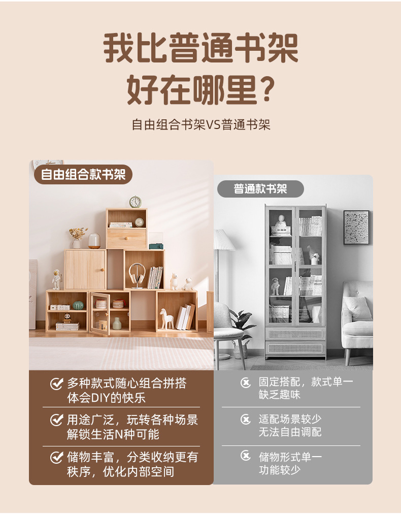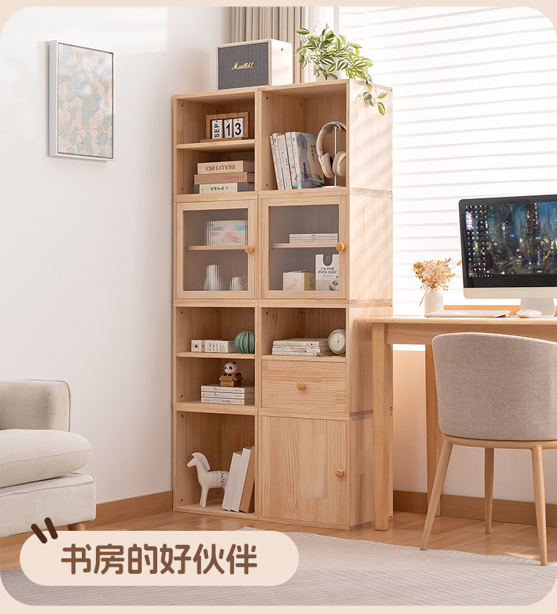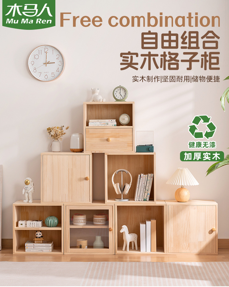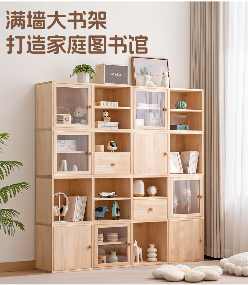 원목 책장 책꽂이 바닥형 수납장 벽걸이형 간단한 책장 수납장 격자형 캐비닛 조합형 수납장 와우스토어 가기