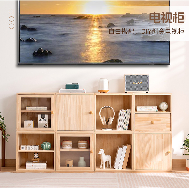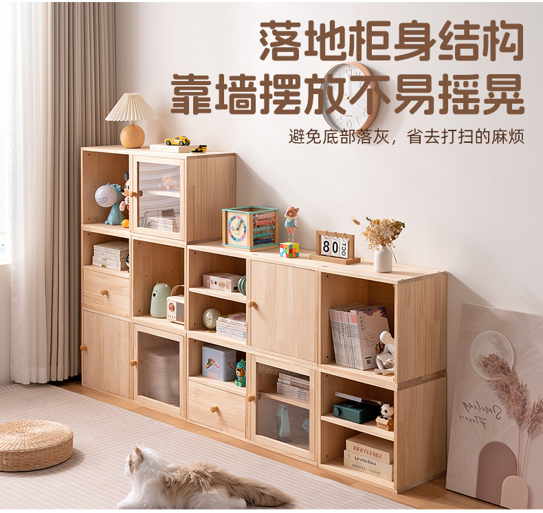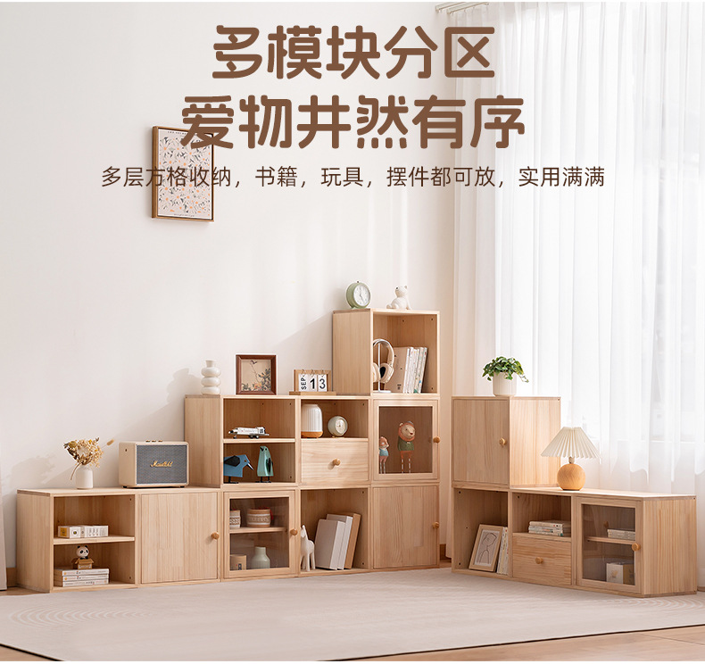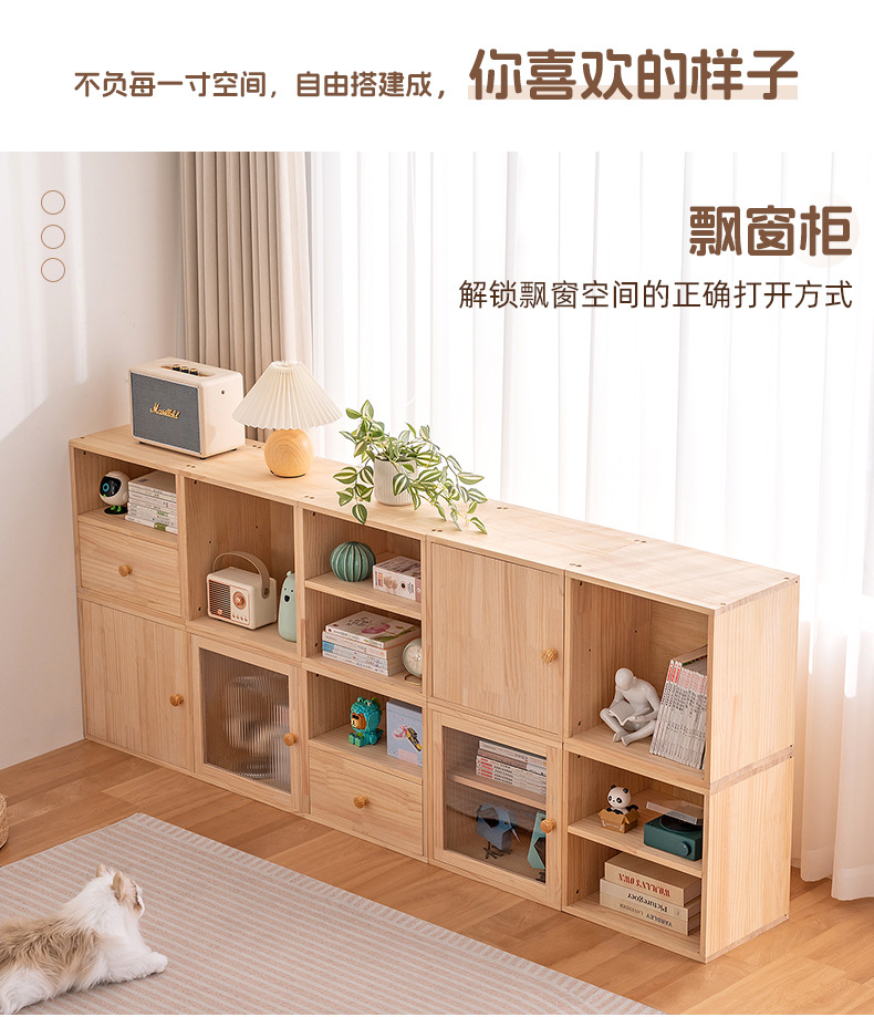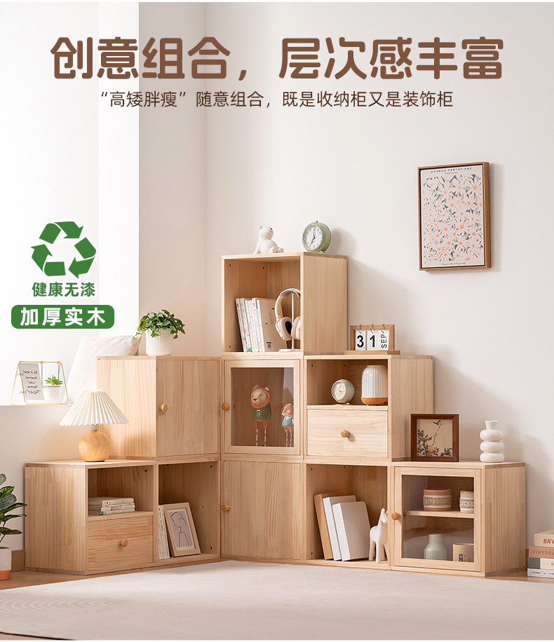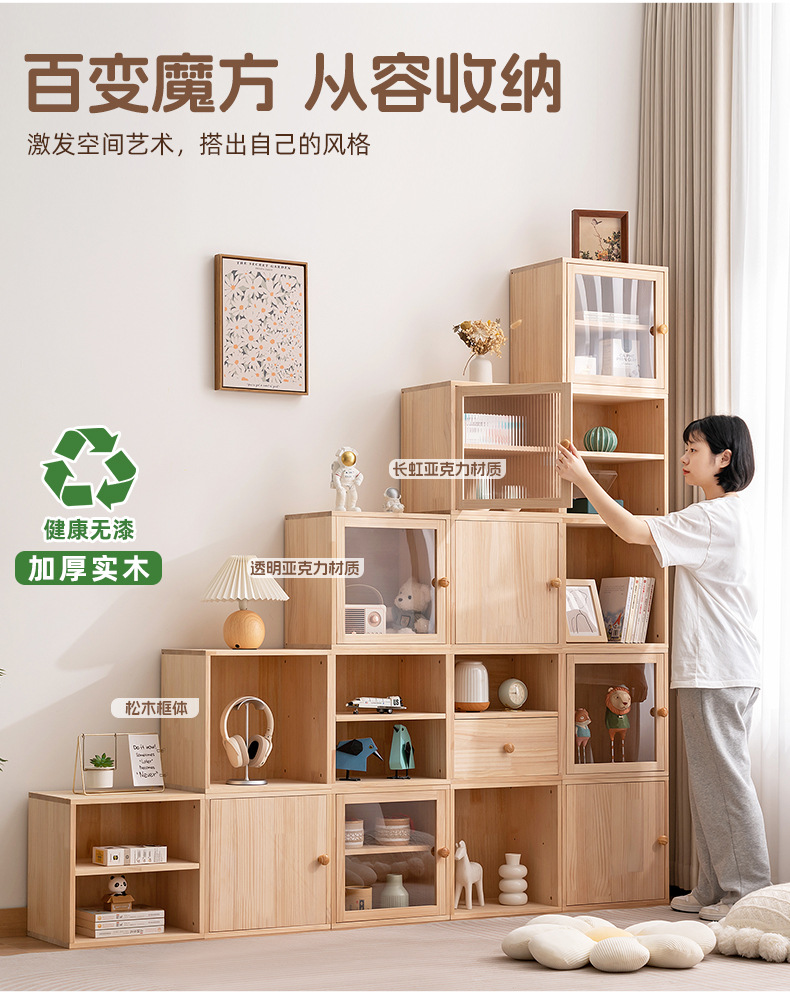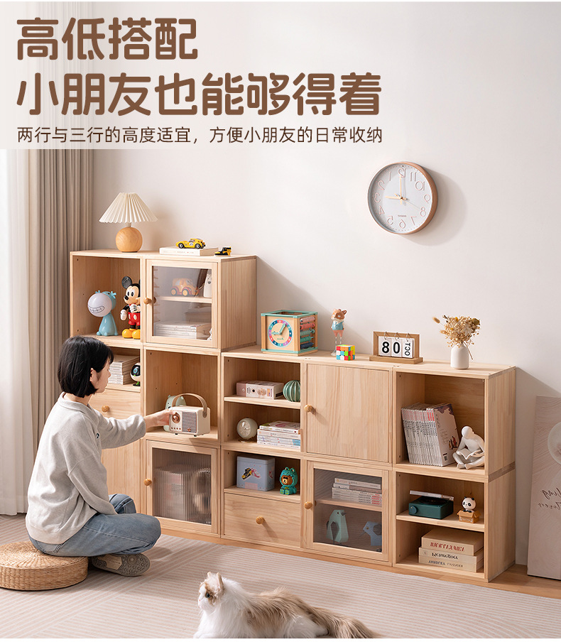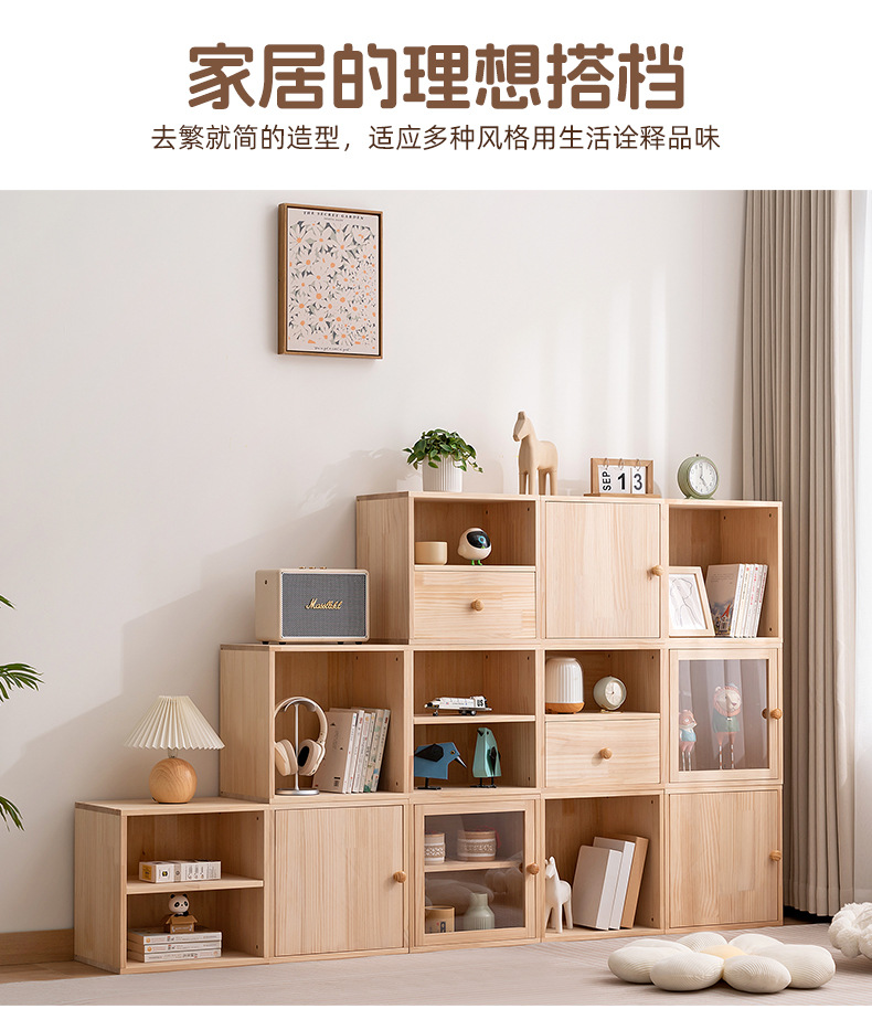원목 책장 책꽂이 바닥형 수납장 벽걸이형 간단한 책장 수납장 격자형 캐비닛 조합형 수납장 와우