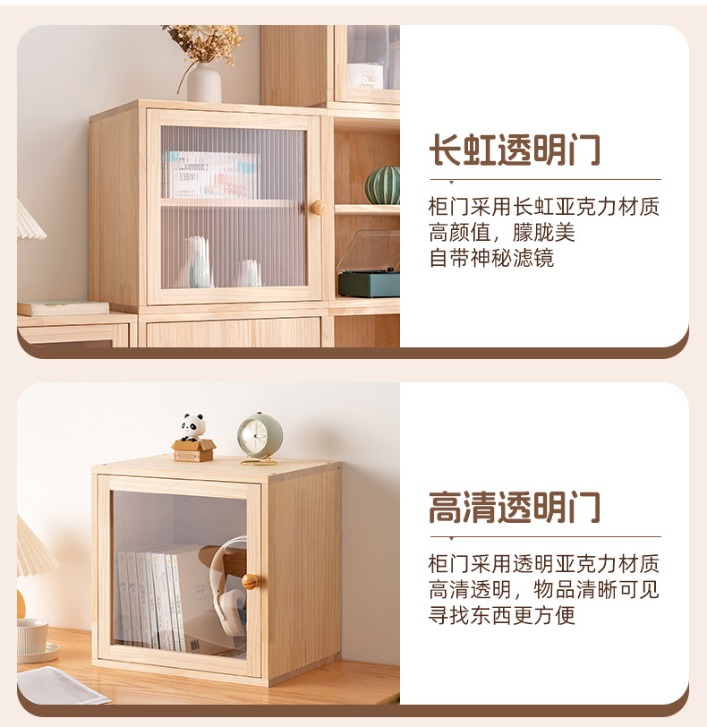 • [자유로운 조합] 투명문-칸막이 있음(두꺼운 원목)