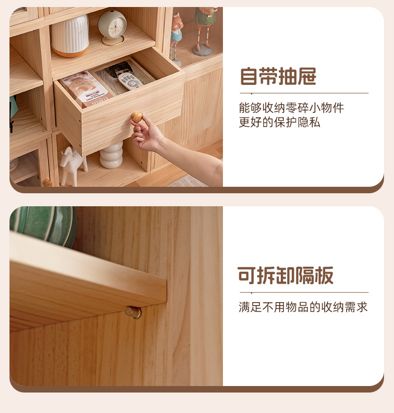 • [자유로운 조합] 도어리스 모델 - 칸막이 포함(두꺼운 원목)
