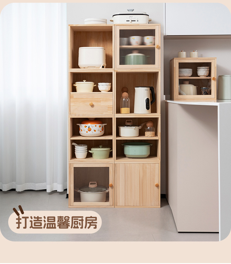• [자유로운 조합] 도어리스 모델 - 칸막이 없음(두꺼운 원목)