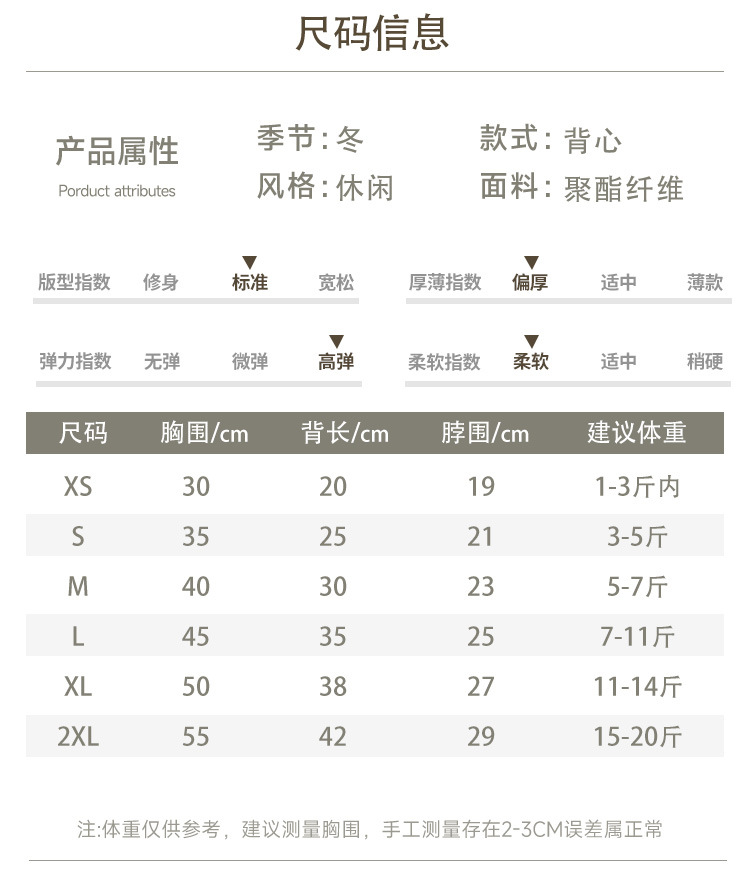 • XS 사이즈 가슴 30, 등 20 (내부 0.5-1.5kg )