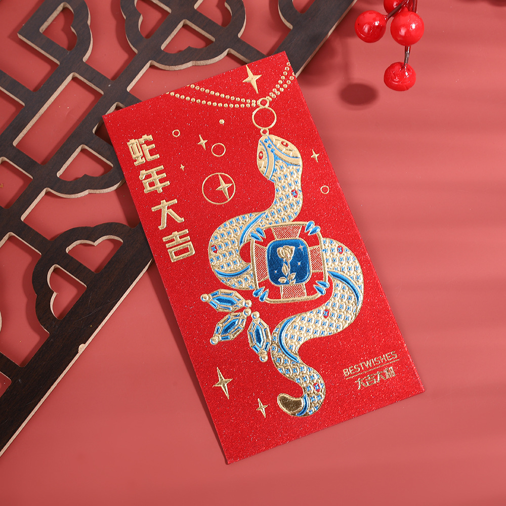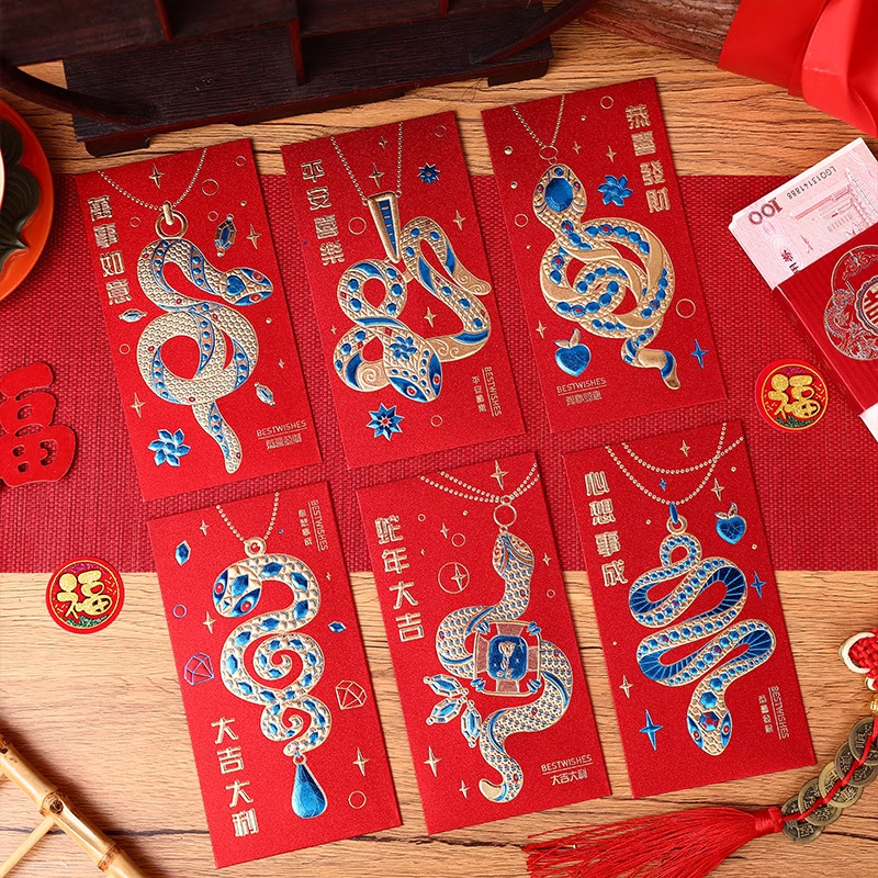 • 뱀의 해 블루 골드 빨간 봉투, 6장의 그림이 혼합된 팩