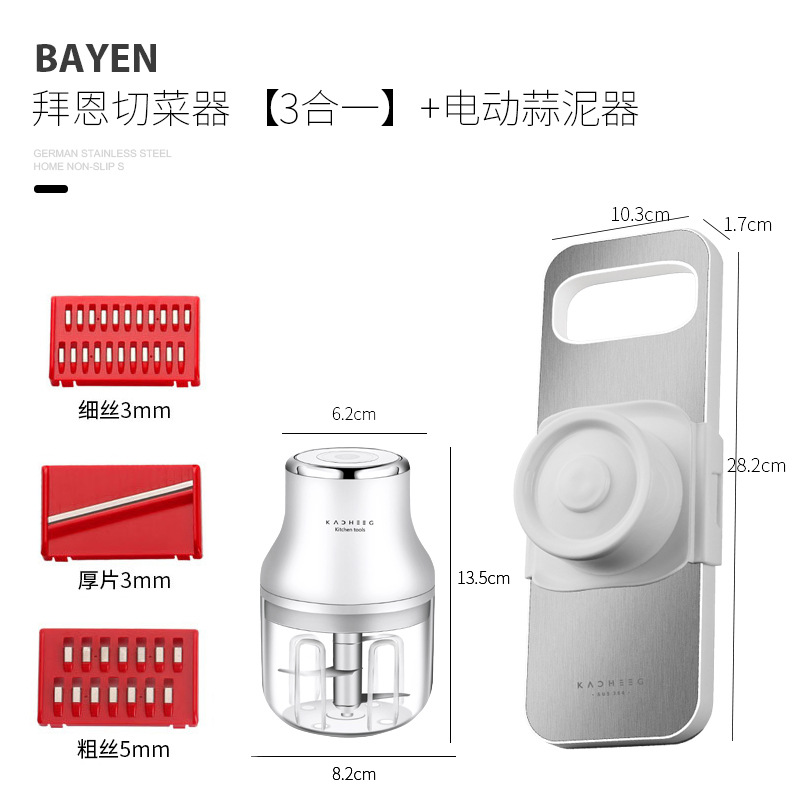 • 두꺼운 304 강철 + 자기 흡입 丨 칼 3개 + 손 보호대 + 전기 마늘 으깨기