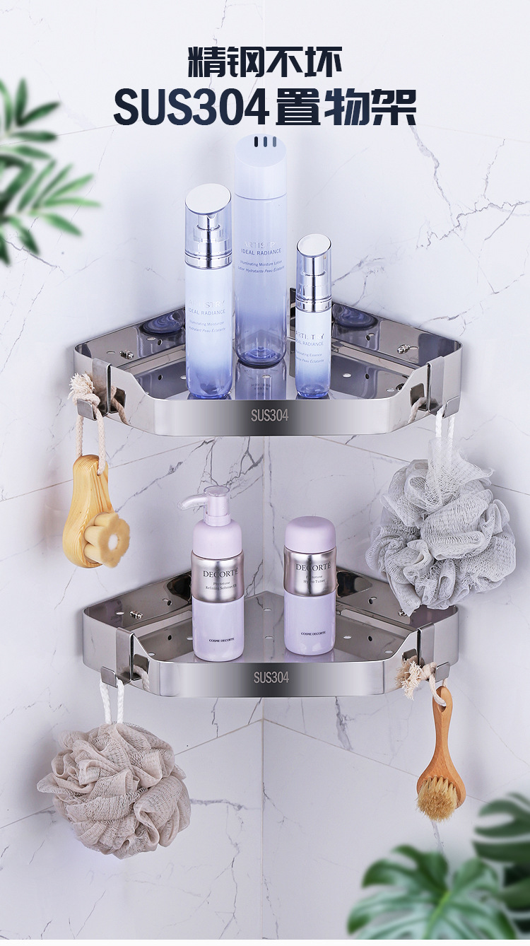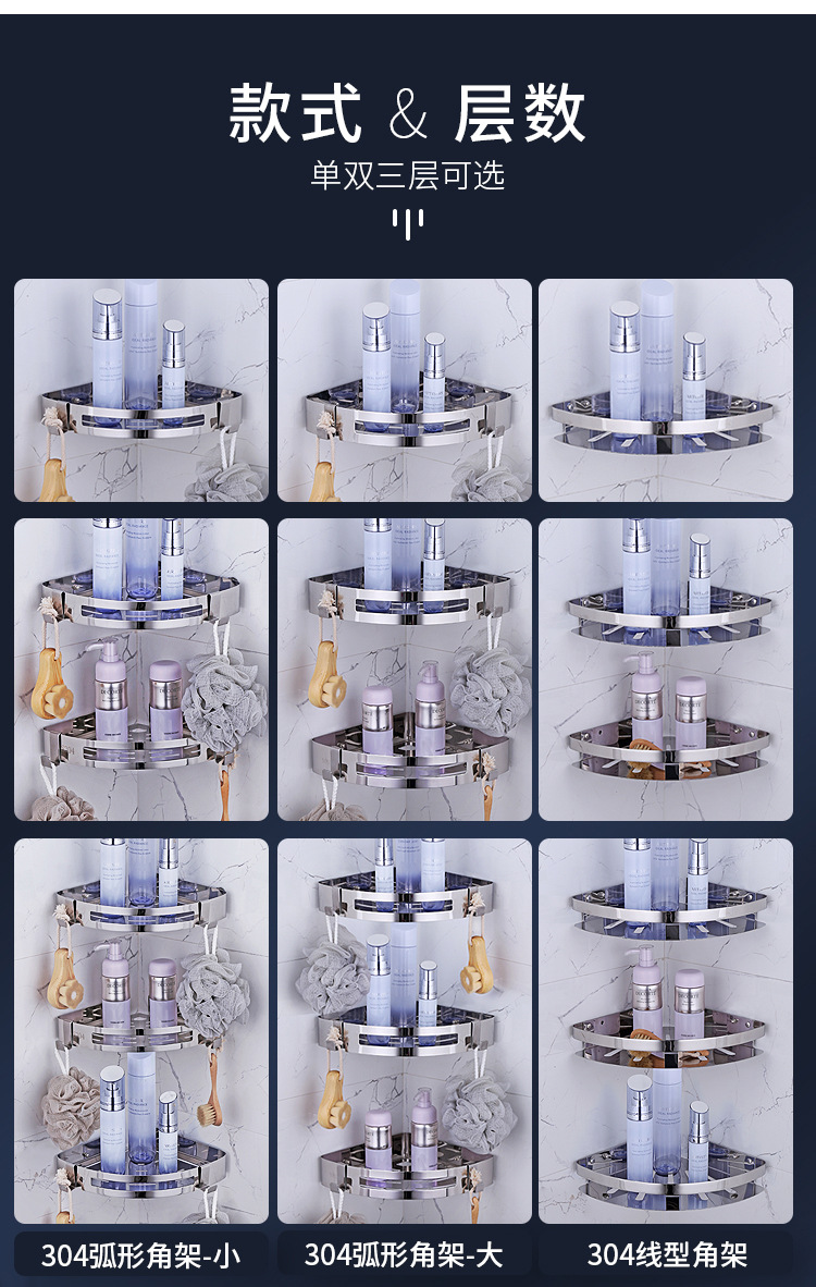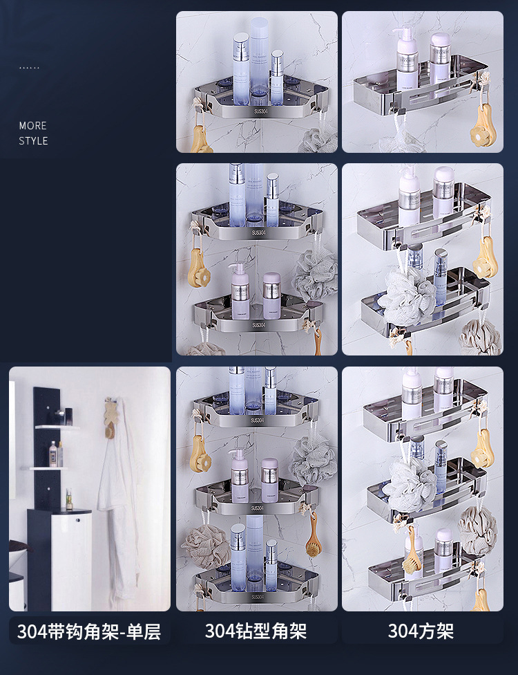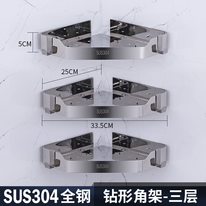 화장실 코너 프레임 벽 304 스테인레스 스틸 욕실 보관 랙 삼각대 벽 교수형 펀치 프리 화장실 보관스토어 가기