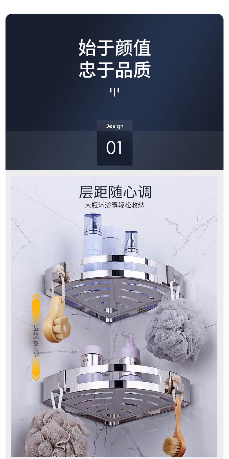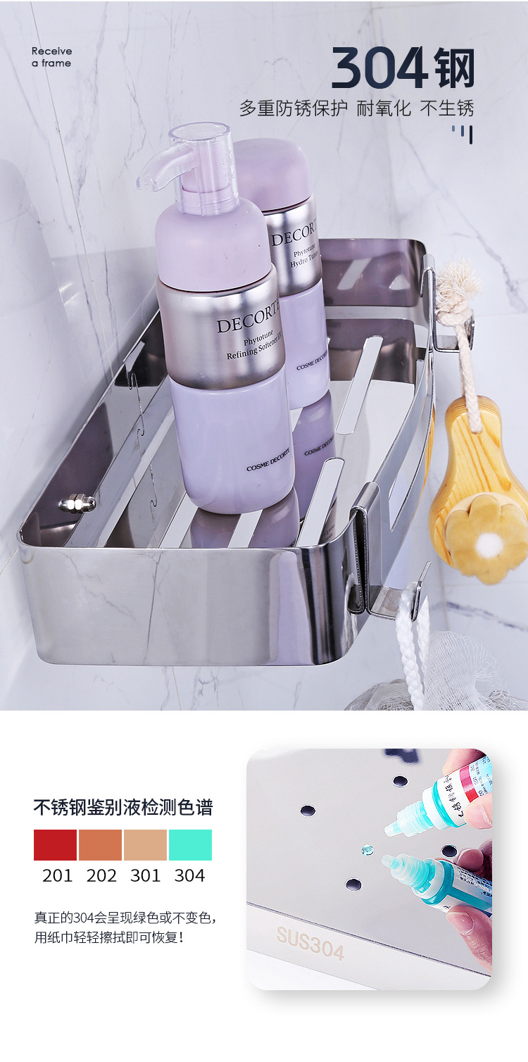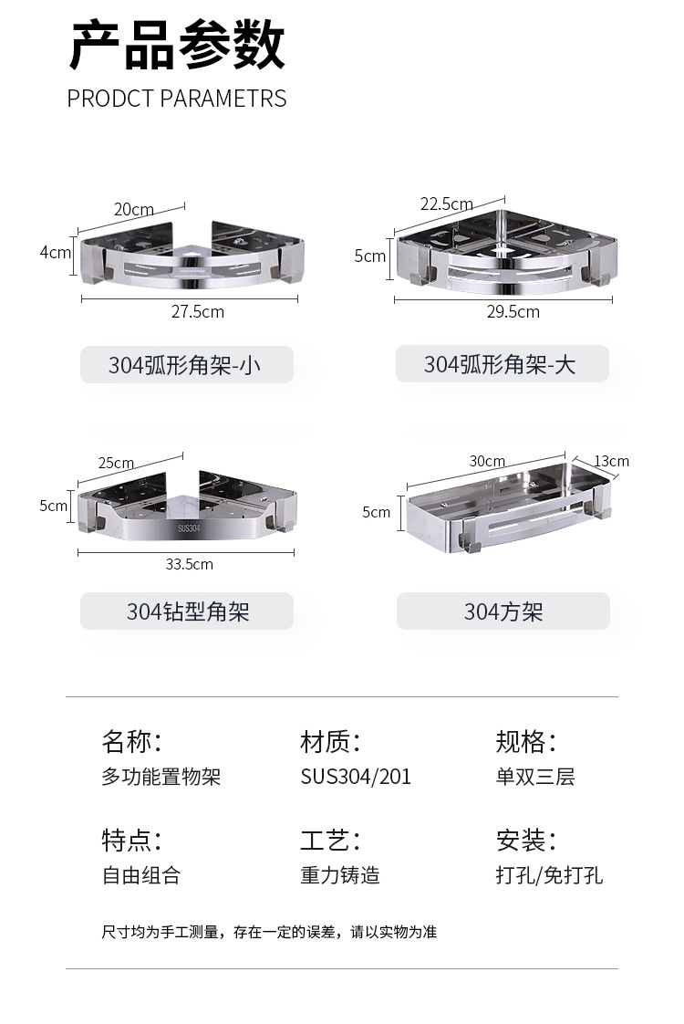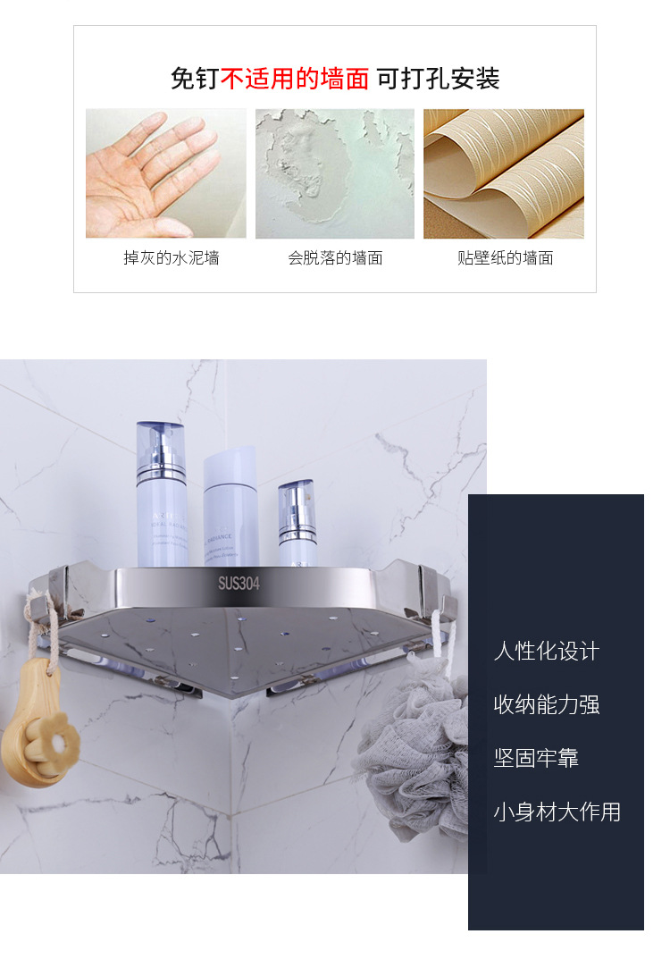 화장실 코너 프레임 벽 304 스테인레스 스틸 욕실 보관 랙 삼각대 벽 교수형 펀치 프리 화장실 보관스토어 가기
