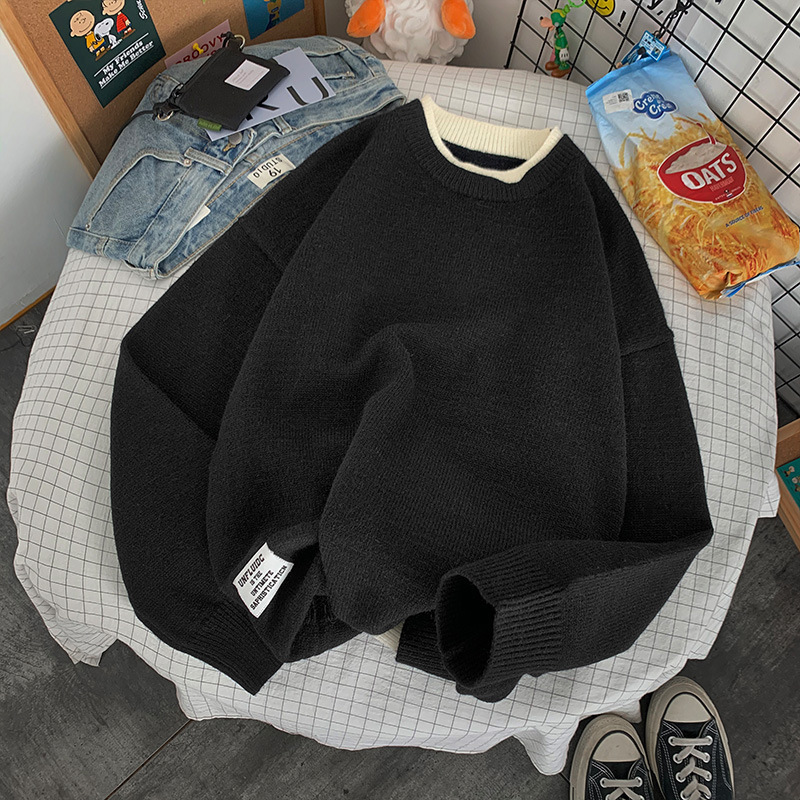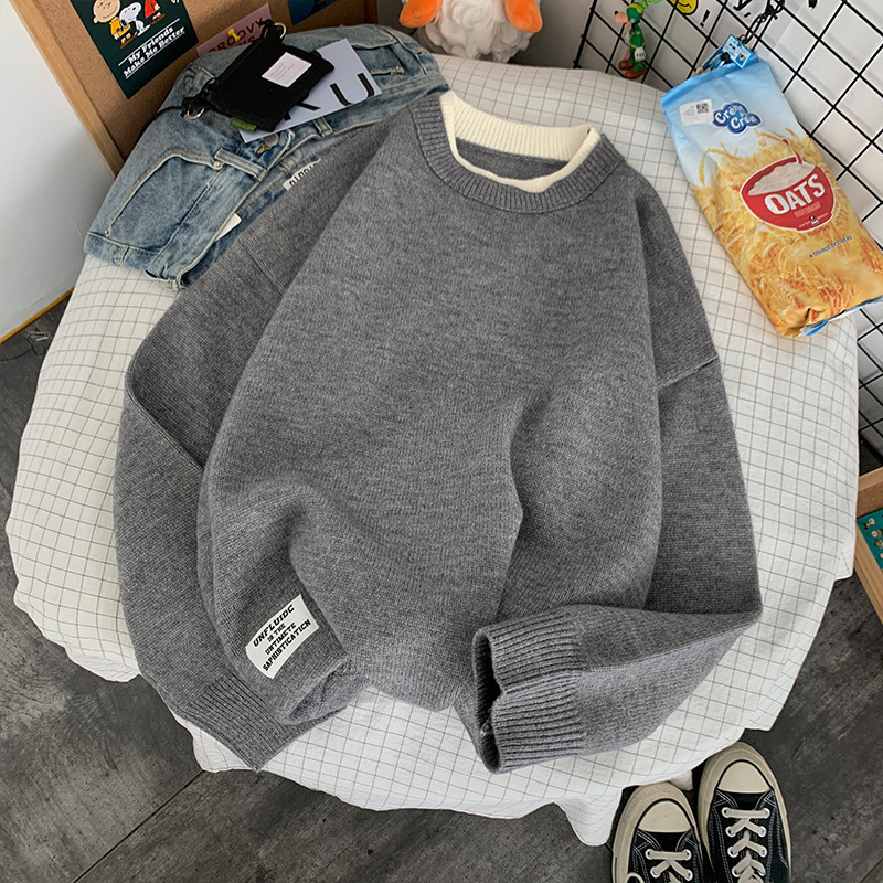 스웨터 남자 느슨한 게으른 Ins 홍콩 스타일 2023 새로운 라운드 넥 스웨터 한국 스타일 가을과 겨울 두꺼운 학생 스웨터스토어 가기