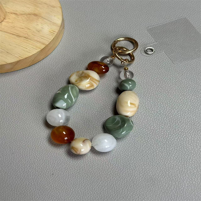 작은 신선한 혼합 컬러 격자 무늬 스톤 팔찌 휴대 전화 케이스 체인 창조적 인 가방 걸이 체인 키 체인 펜던트 유니버설 여성스토어 가기
