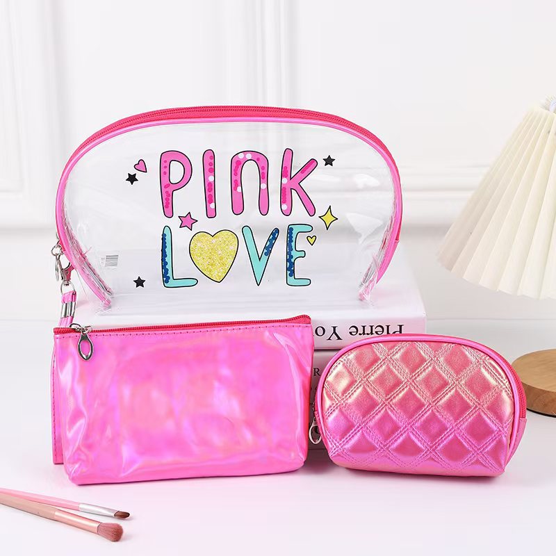 새로운 대용량 여행 휴대용 투명한 3 조각 화장품 가방 저장 가방 소녀 귀여운 세탁 가방 도매