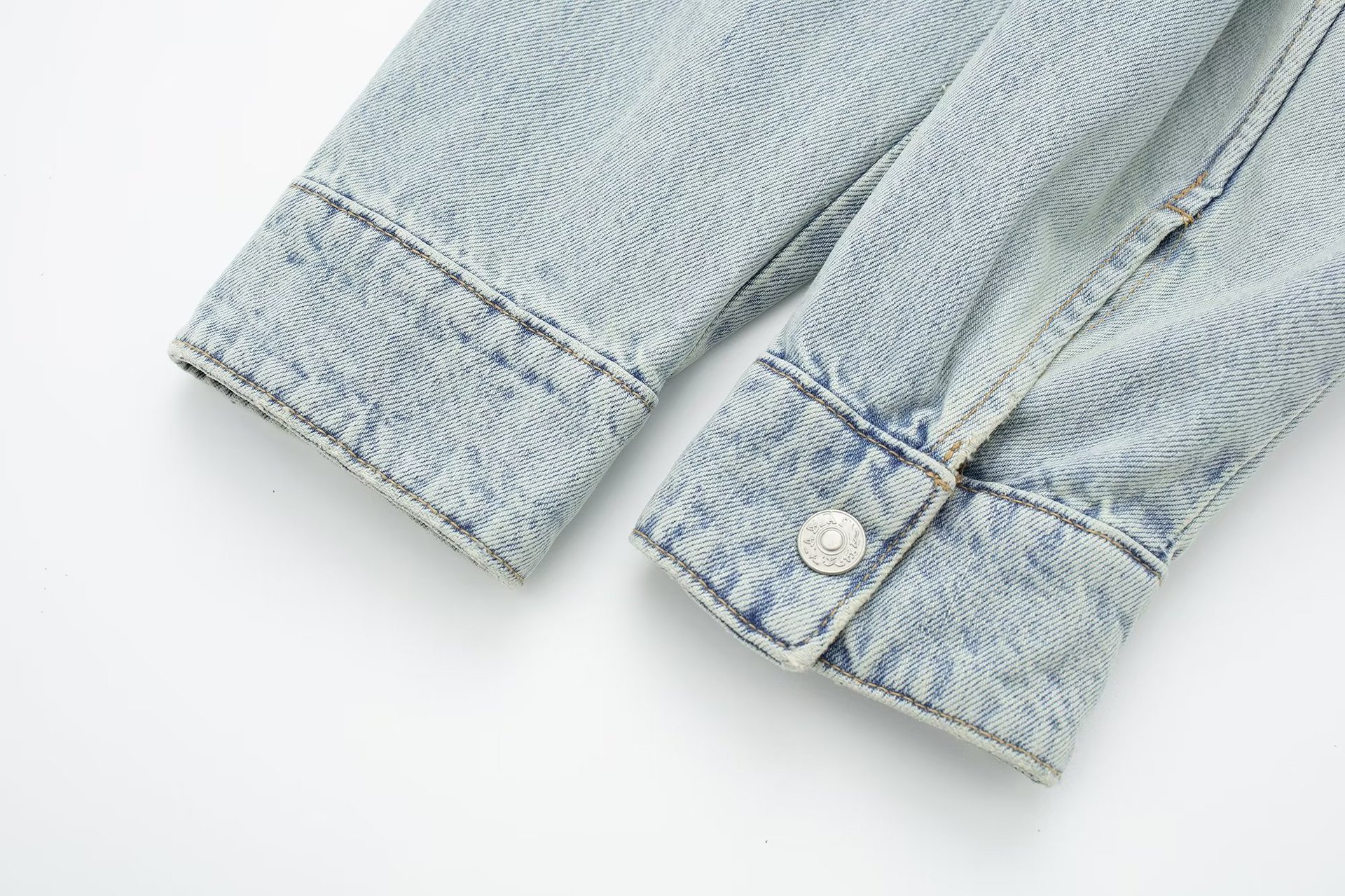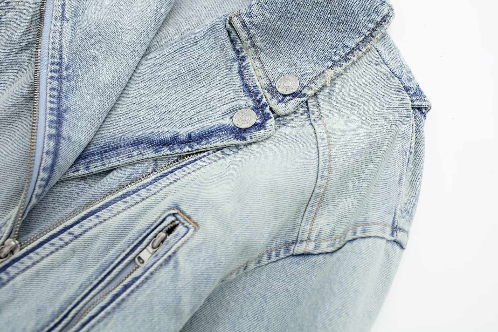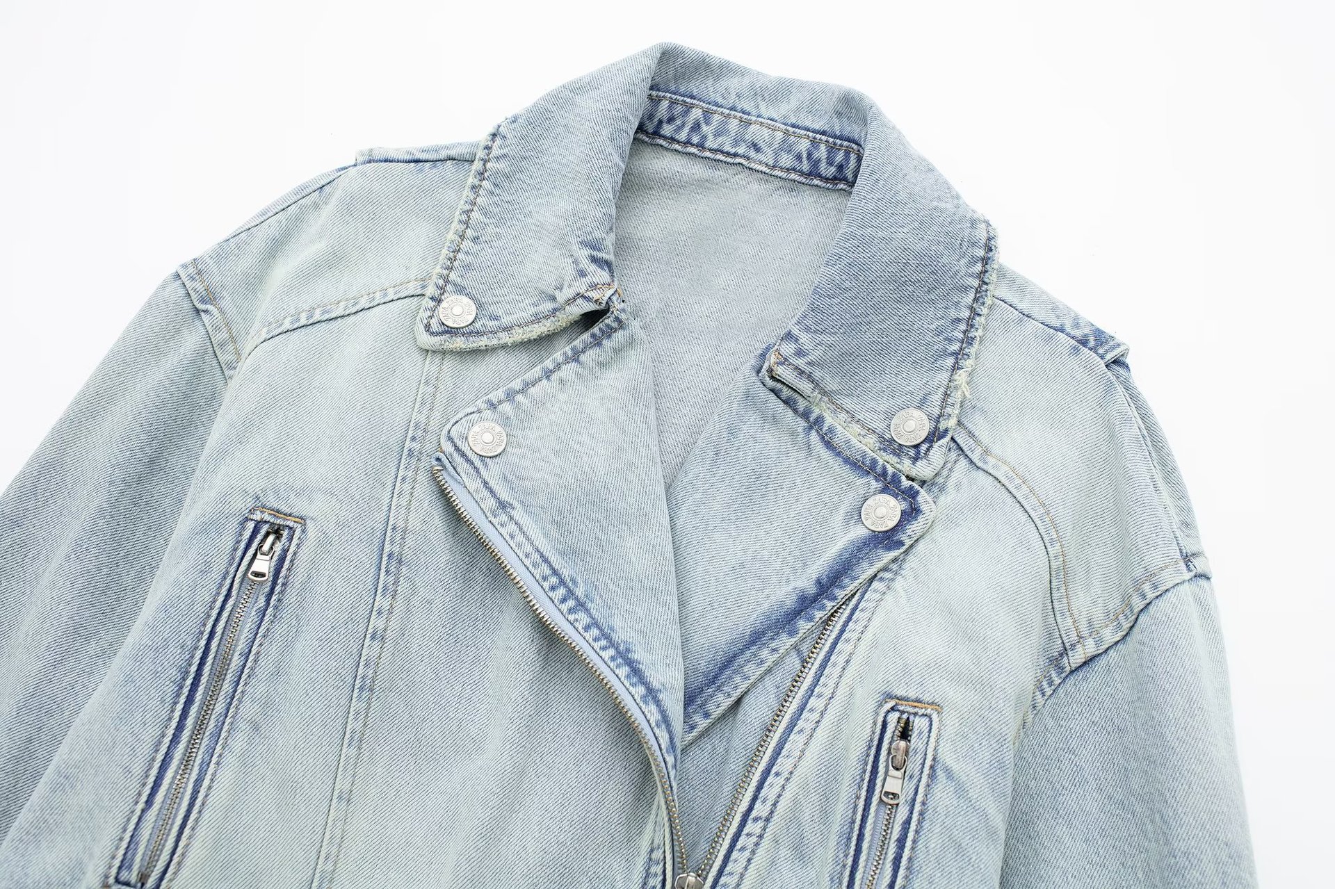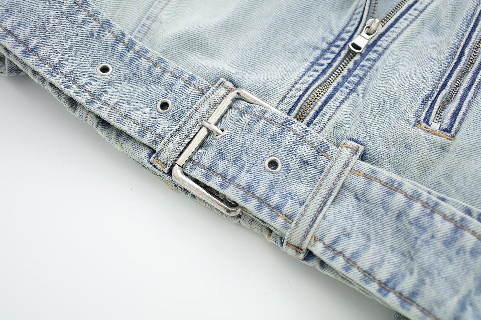 유럽과 미국 여성의 이른 가을 새로운 유행 우아한 짧은 벨트 라이트 블루 데님 재킷 코트스토어 가기