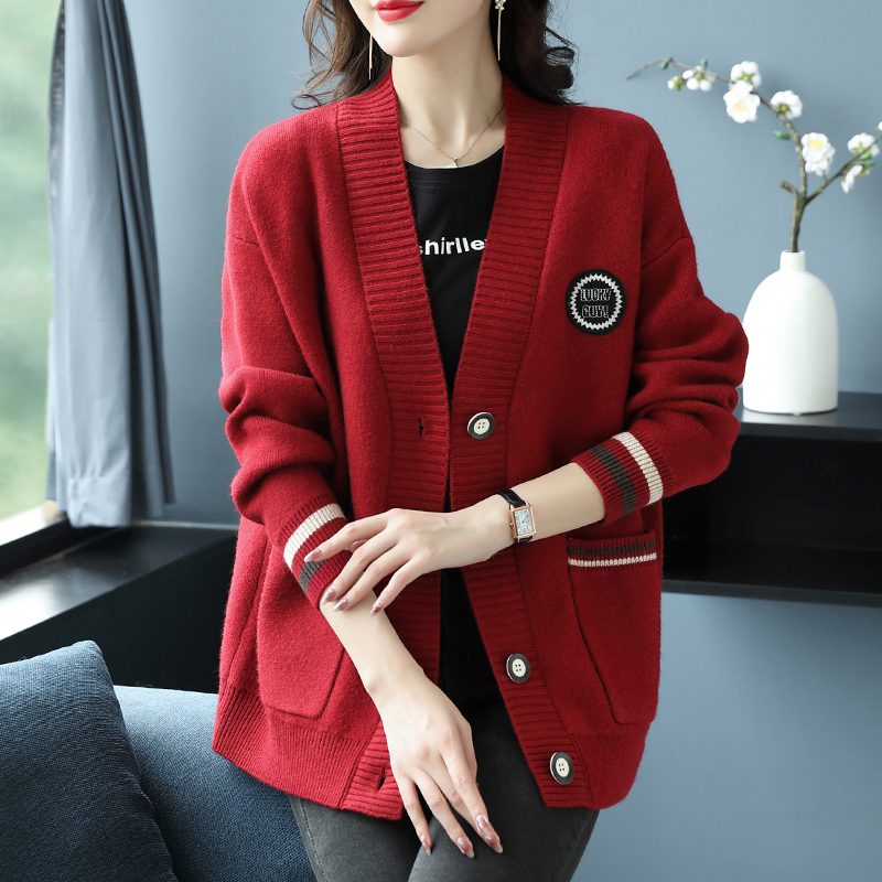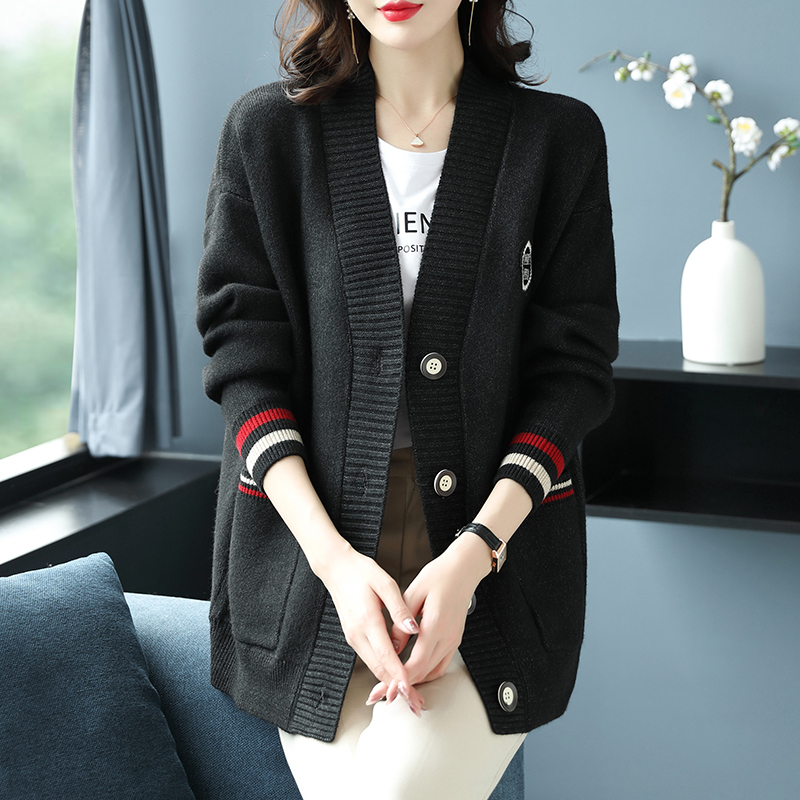 Hengyuanxiang 울 카디건 여성용 플러스 사이즈 느슨한 외부 니트 스웨터 가을과 겨울 두꺼운 스웨터 코트 게으른 스타일 컬러 매칭