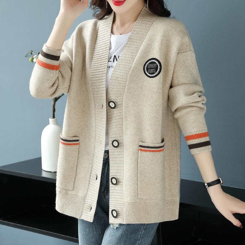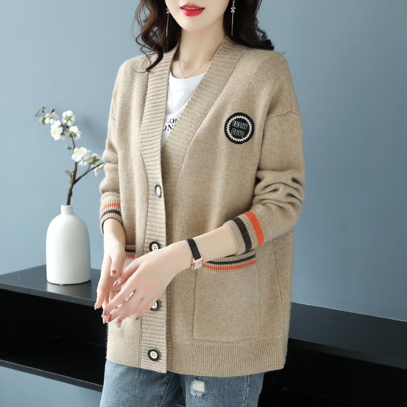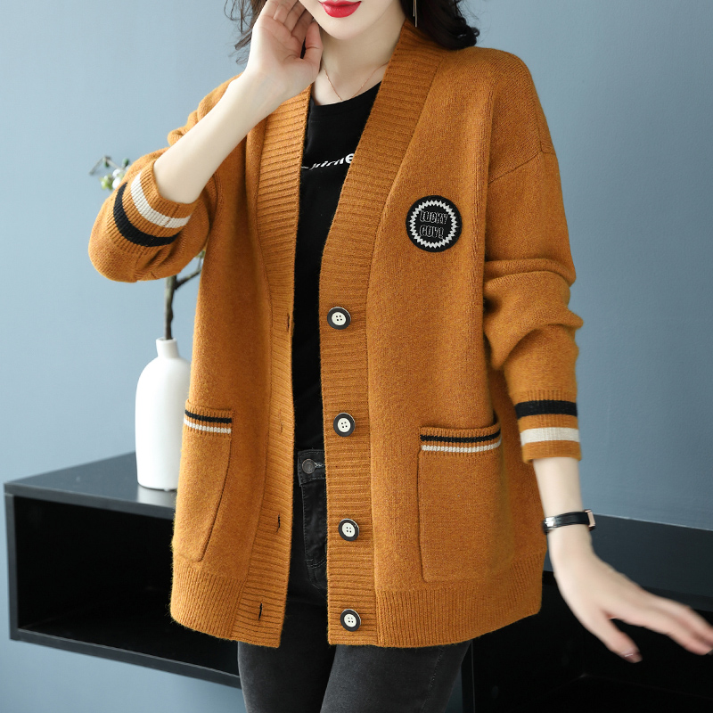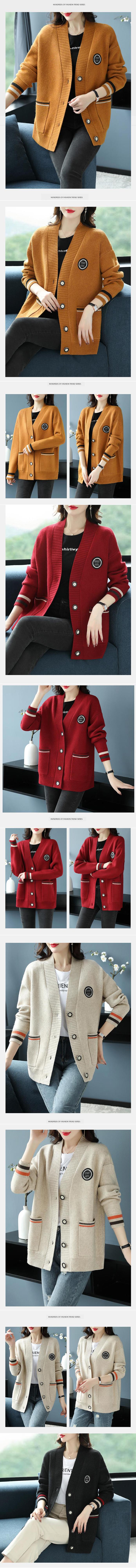 Hengyuanxiang 울 카디건 여성용 플러스 사이즈 느슨한 외부 니트 스웨터 가을과 겨울 두꺼운 스웨터 코트 게으른 스타일 컬러 매칭스토어 가기